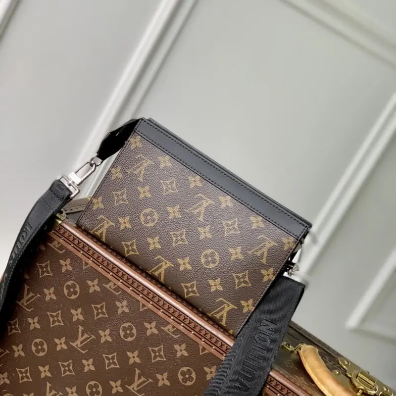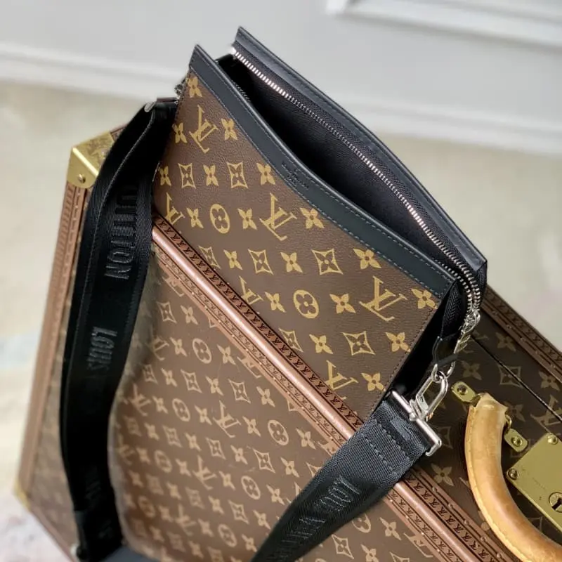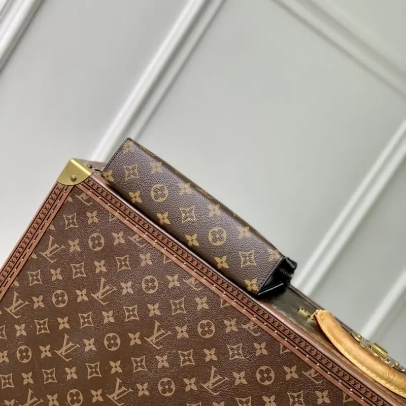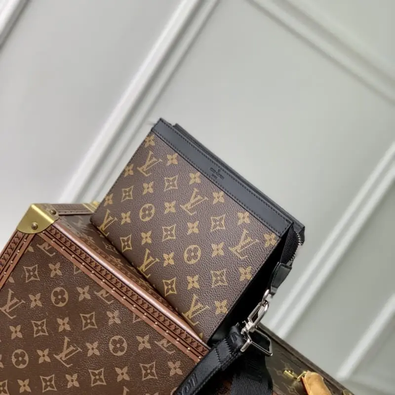 M81124 Monogram Alpha Wearable Wallet combines Monogram Eclipse canvas and leather trim to accommodate mobile phones and small wallets. Wide mouth design and side accordion structure for easy access Adjustable shoulder strap for multiple carrying methods. Detailed Features 18.5 x 11 x 6.5cm