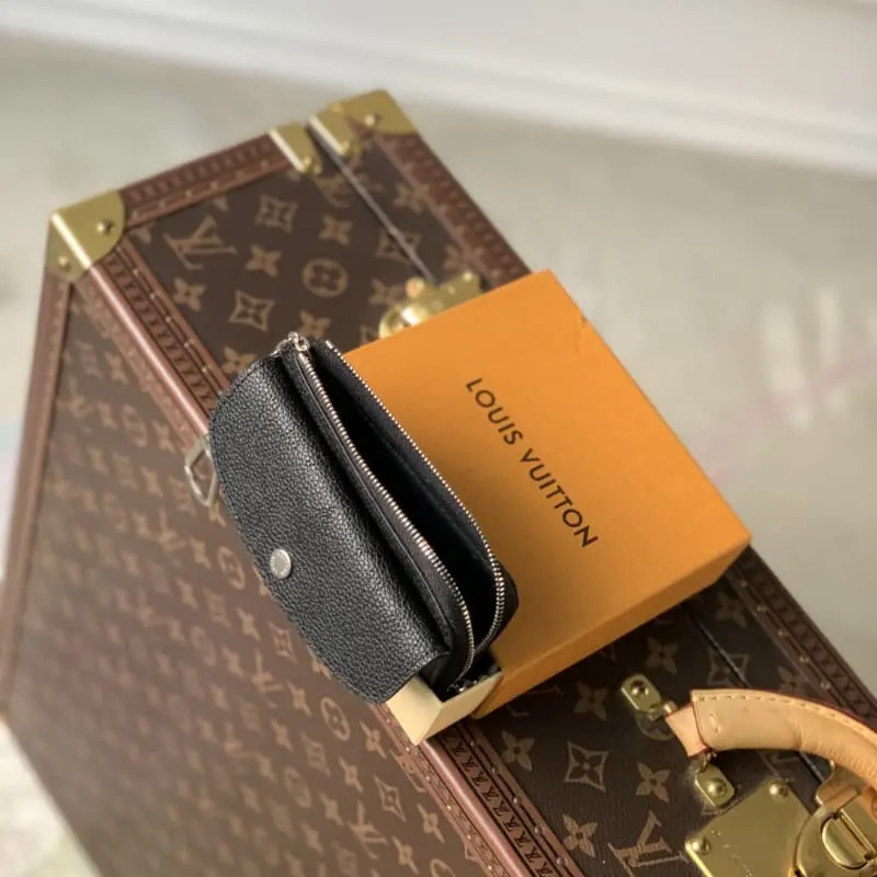M81287 Black “Porto Cult Rect Verso” made of soft Mahina leather with Lbag’s iconic Monogram pattern. Original and versatile accessories. Flap pockets, wide L-shaped zippered compartments, 4 card slots, etc. have excellent practicality. Decorated with hooks and chains for attachment to bags and belts. Dimensions: 13??9.5??2.5