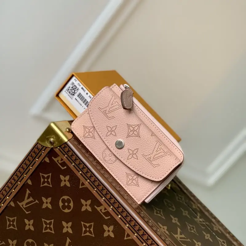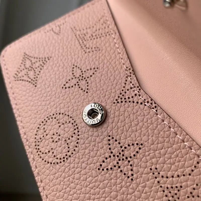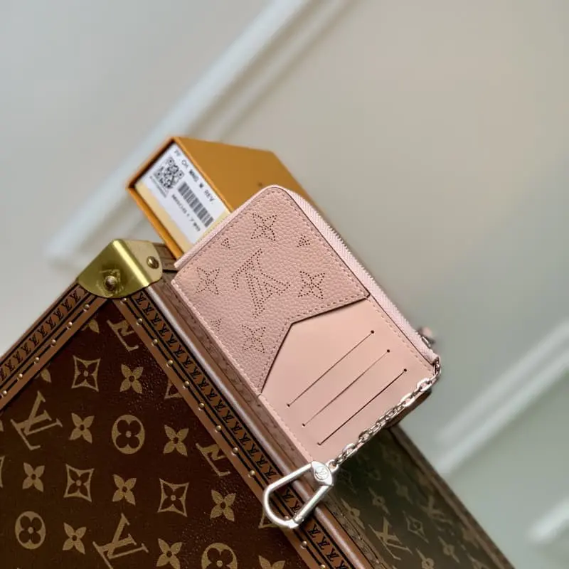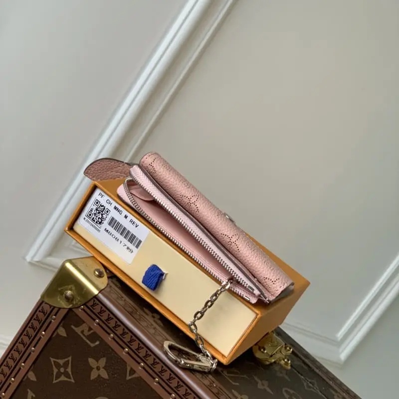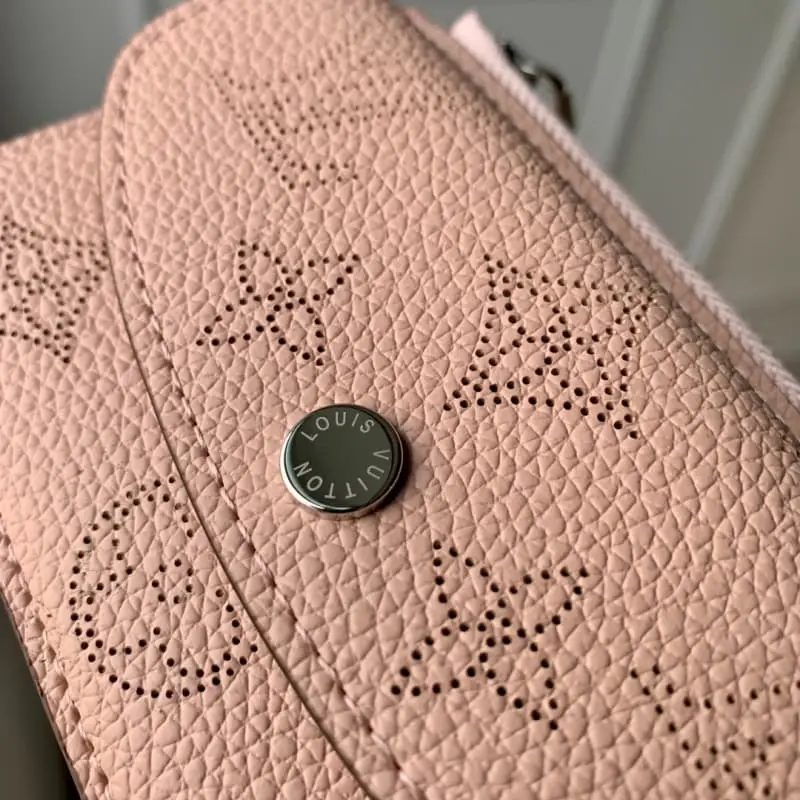 M81287 Pink is embellished with Lbag’s iconic Monogram pattern in the “Porto Cult Rect Verso” crafted in soft Mahina leather. An original and versatile accessory. Flap pockets, wide L-shaped zippered compartment, 4 card slots, etc. are all very practical. It is decorated with hooks and chains so that it can be attached to bags and belts. Dimensions: 13??9.5??2.5