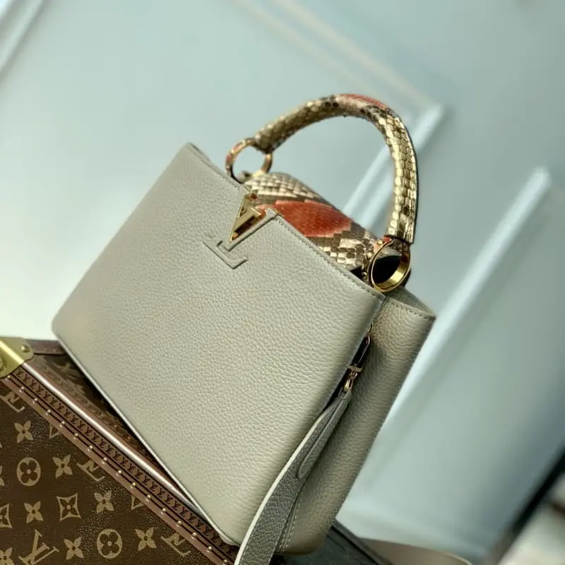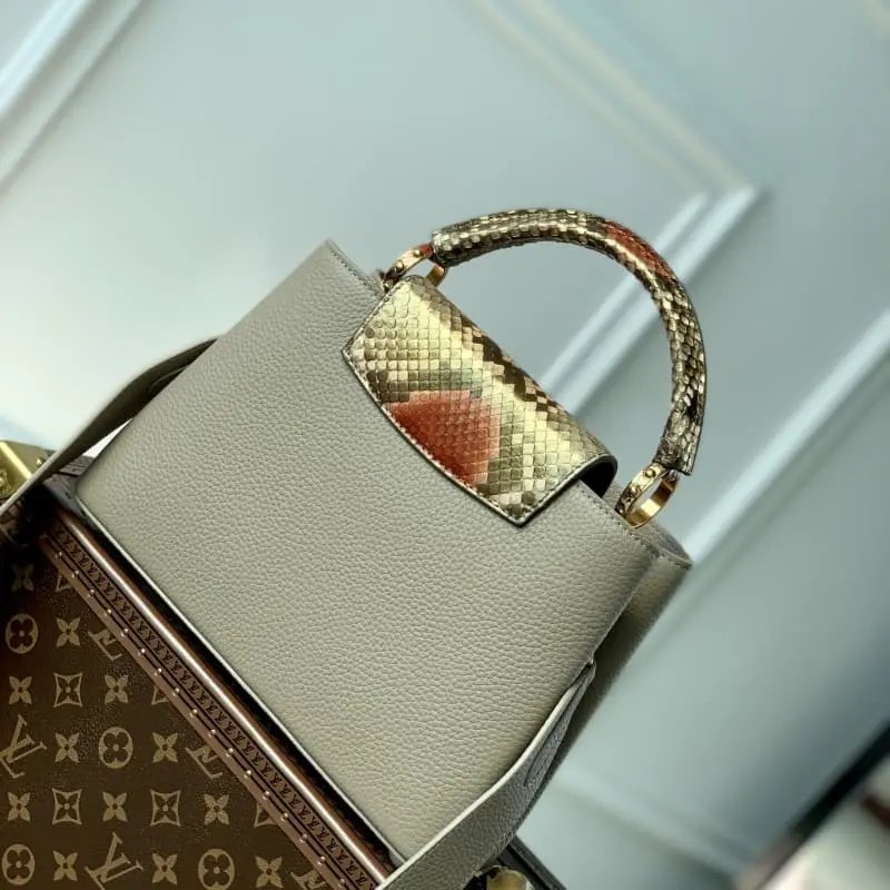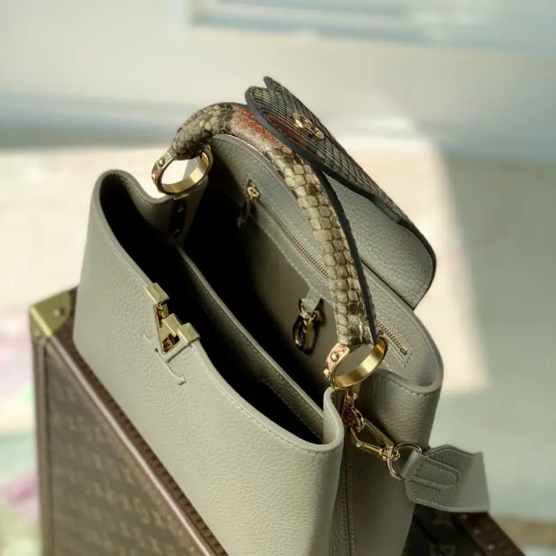 [Exclusive real shot model 81310 Khaki with python leather small] Capucines small handbag French imported calfskin, shiny metal accessories, unique Capucines flap can be put inside the bag to display the letter logo, and can be turned out to show the Monogram Flower pattern size: 27??18??9cm
