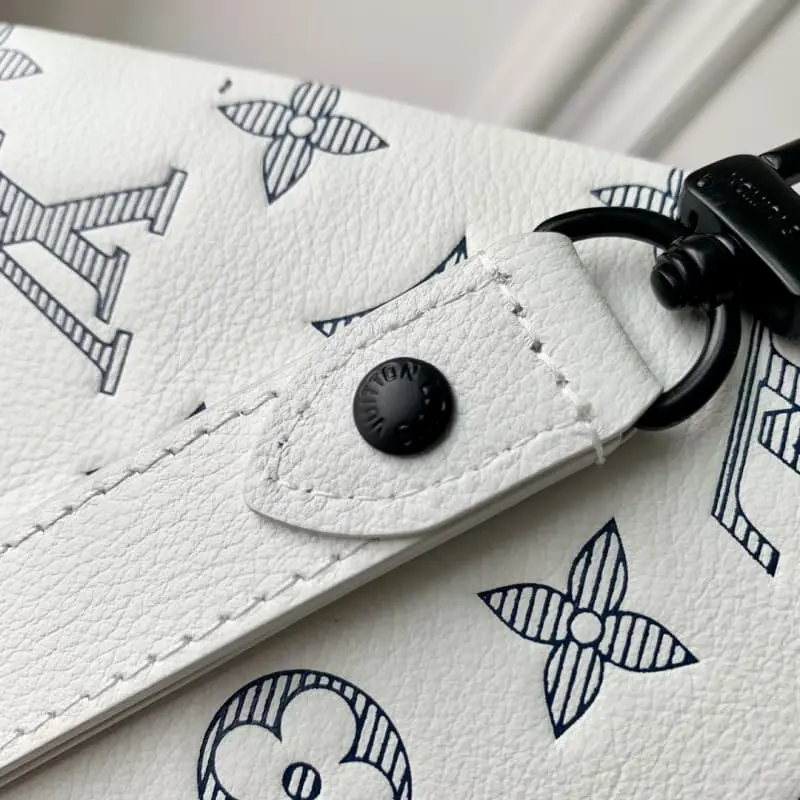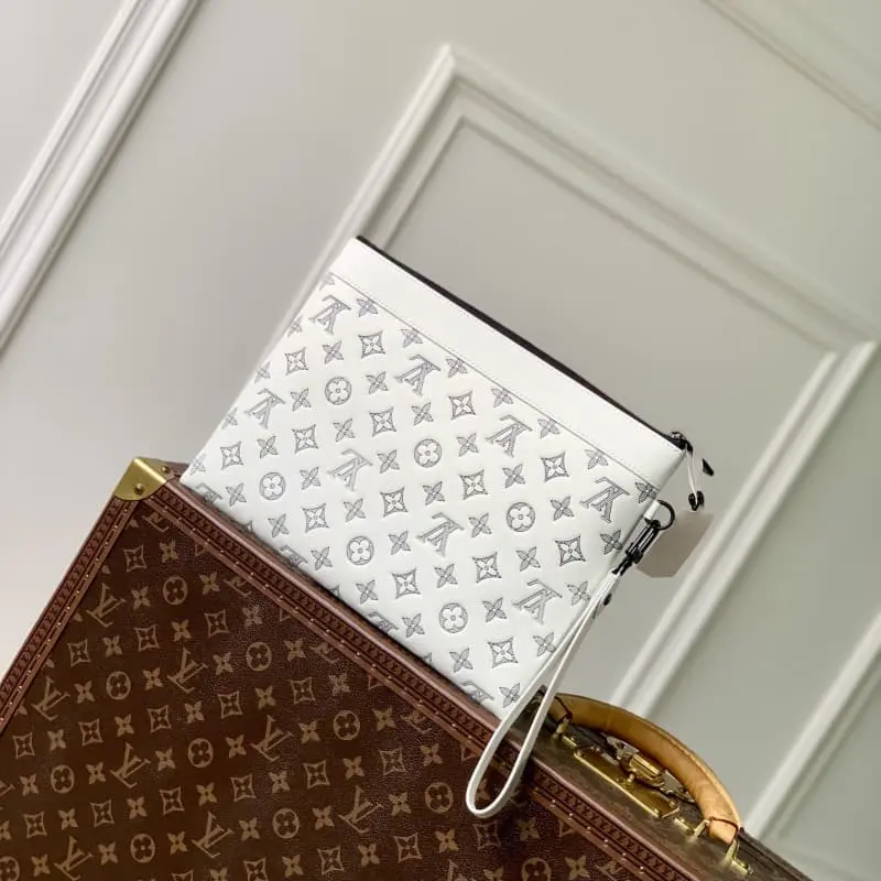 M81570 Elegant white new season POCHETTE TO-GO clutch! This Pochette To-Go clutch is made of elegant Monogram Shadow embossed cowhide leather. It has a zipper and plenty of space to store receipts, mobile phones and other personal items. It can also be used with a detachable wrist strap. 30 x 21.5 x 1 cm (length x height x width)