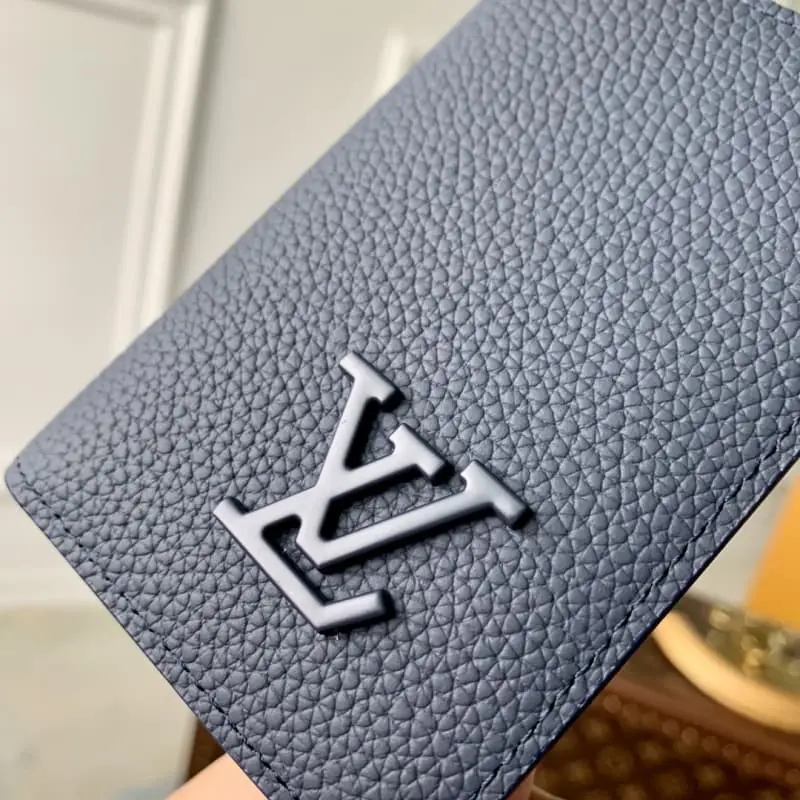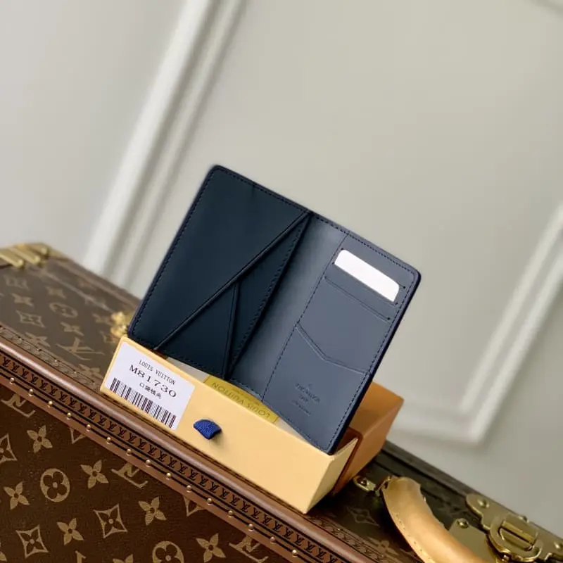 M81730. Men’s new card holder. New LV Aerogram pocket wallet. Calfskin is as soft as old airmail. Metal LV letters mark the brand’s identity. Equipped with compartments and card slots. A fusion of elegance and functionality. Can be paired with any LV Aerogram bag. Detailed features. Dimensions: 8 x 11 x 1 cm