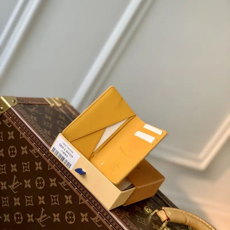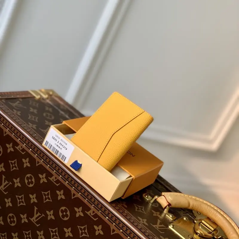 M81809 Yellow Men’s New Card Holder New LV Aerogram Pocket Wallet The selected calfskin is as soft as old aviation letterheads The metal LV letters mark the brand identity in a low-key manner Equipped with compartments and card slots to achieve a fusion of elegance and functionality. Can be matched with any LV Aerogram series handbag. Dimensions: 8 x 11 x 1 cm