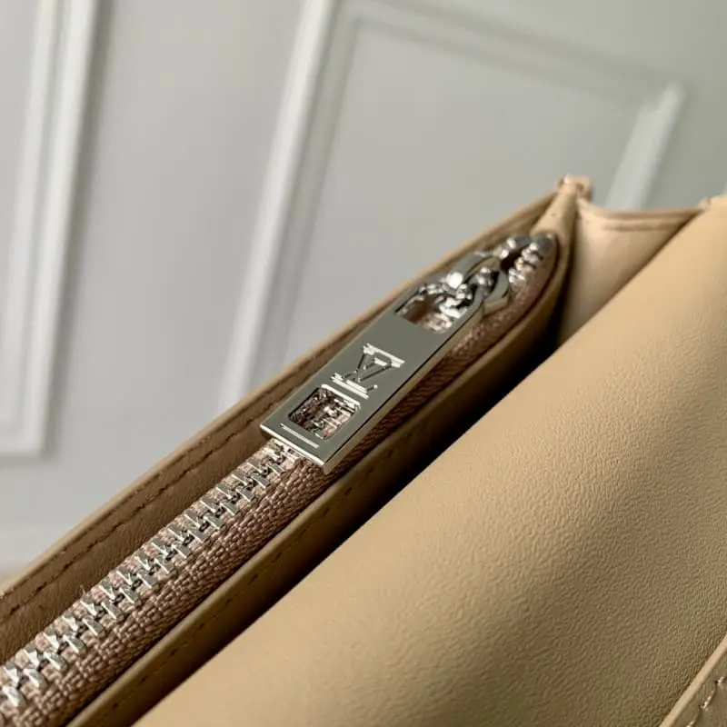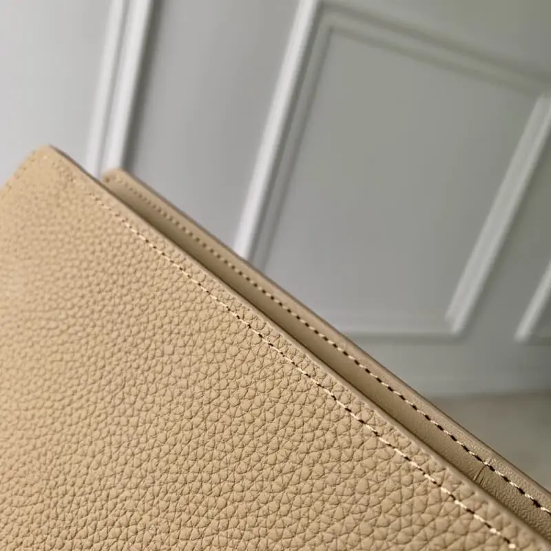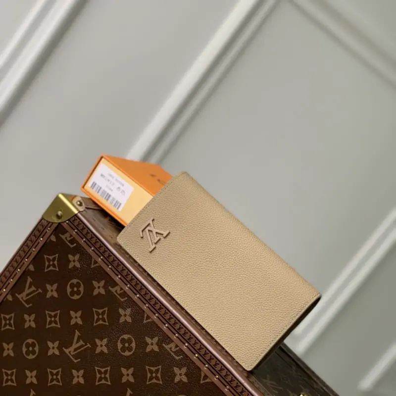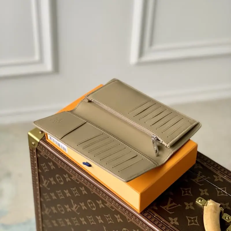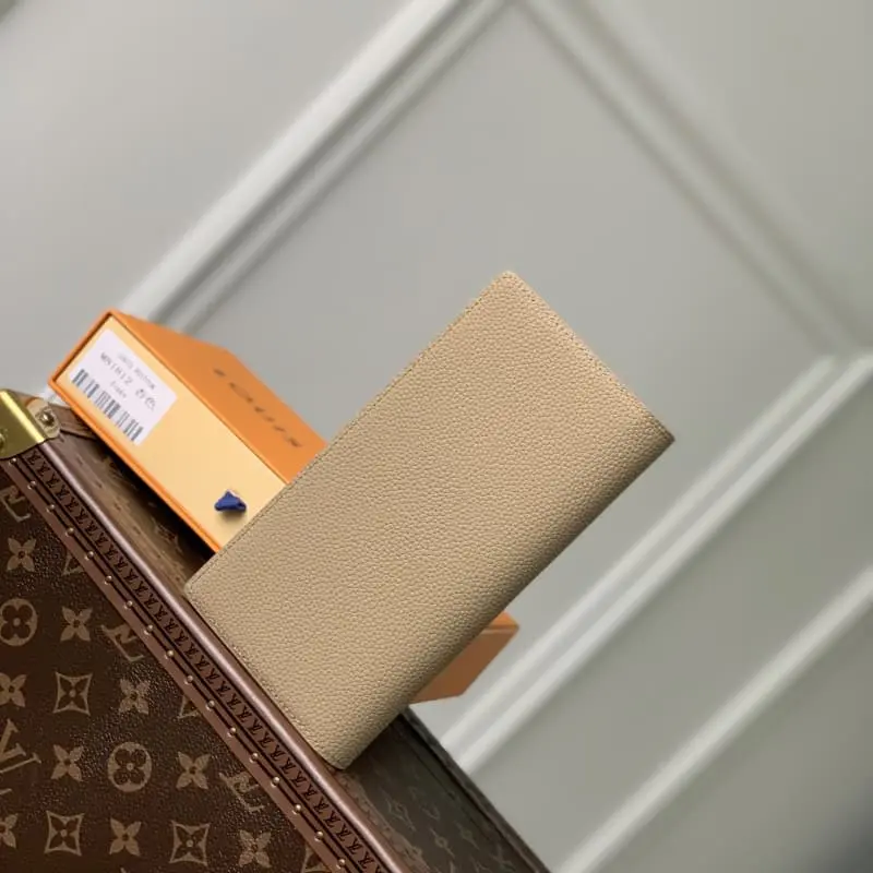 M81812 Apricot Reinterpret the “Portefeuille Brazza NM” with a fresh “LV AEROGRAM” version, which exudes subtle elegance. Special processing on black calfskin achieves luxurious grain. The metal LV signature adds a low-key embellishment. The compartments for cash, documents, coins and functional items equipped with 17 card slots also match the bags of the “LV AEROGRAM” series. Dimensions: 10 x 19 x 2 cm