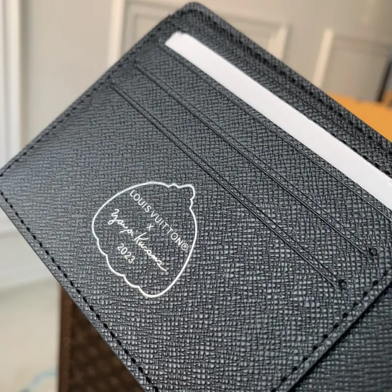 M81931. LV x YK Multiple Wallet features a cheerful print on Monogram Eclipse canvas for the new Lbag x Yayoi Kusama collection. A pioneer of the avant-garde since the 1960s, this revered Japanese artist is known for her symbolic use of polka dots. This pattern recreates her hand-painted dots using a complex screen-printing technique with a realistic 3D effect. This practical accessory becomes an artistic expression. Dimensions: 11.5 x 9 x 1.5 cm