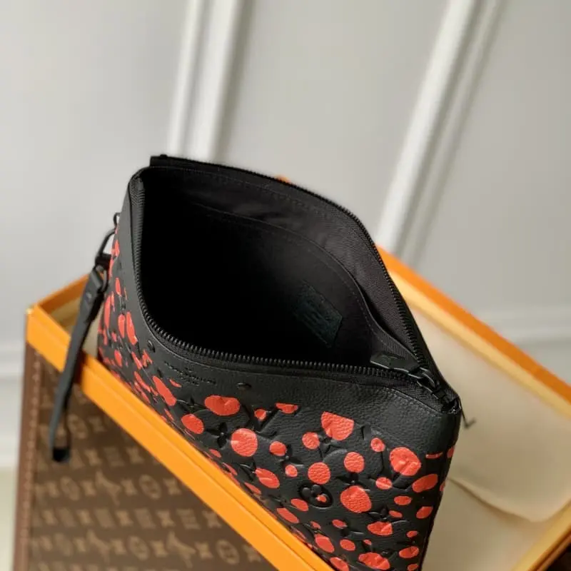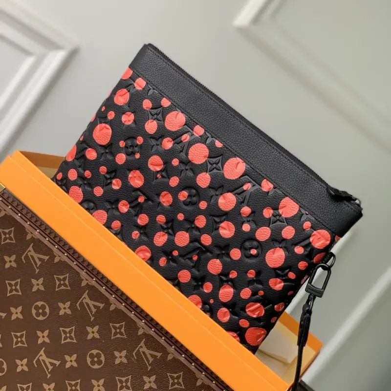 M82019 Lbag and Yayoi Kusama once again join forces to continue the creative connection between the brand and the Japanese artist. LV x YK Pochette To Go Clutch is Taurillon leather embossed with the traditional Monogram pattern to complement the polka dot print that Yayoi Kusama is obsessed with, making it a perfect collection in a striking element that seems to repeat endlessly. Detailed Features 30 x 21.5 x 1 cm