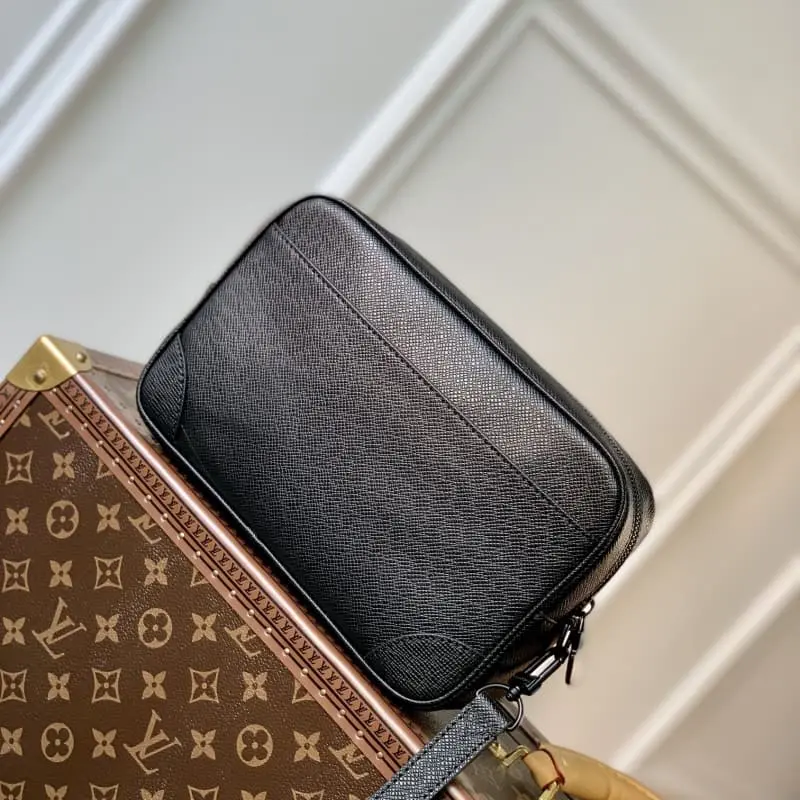 M82078 MEN’S BAG CLUTCH COLLECTION POCHETTE KASAI CLUTCH This Kasa pouch is made of Damier graphite canvas with reinforced corners and black leather straps on the front and zippered back pocket. Its wide zippered opening provides access to three flat pockets and ten card slots. This piece can be worn as a bag or on the wrist with its detachable wrist strap. Dimensions: 25 x 15.5 x 6.5 cm.