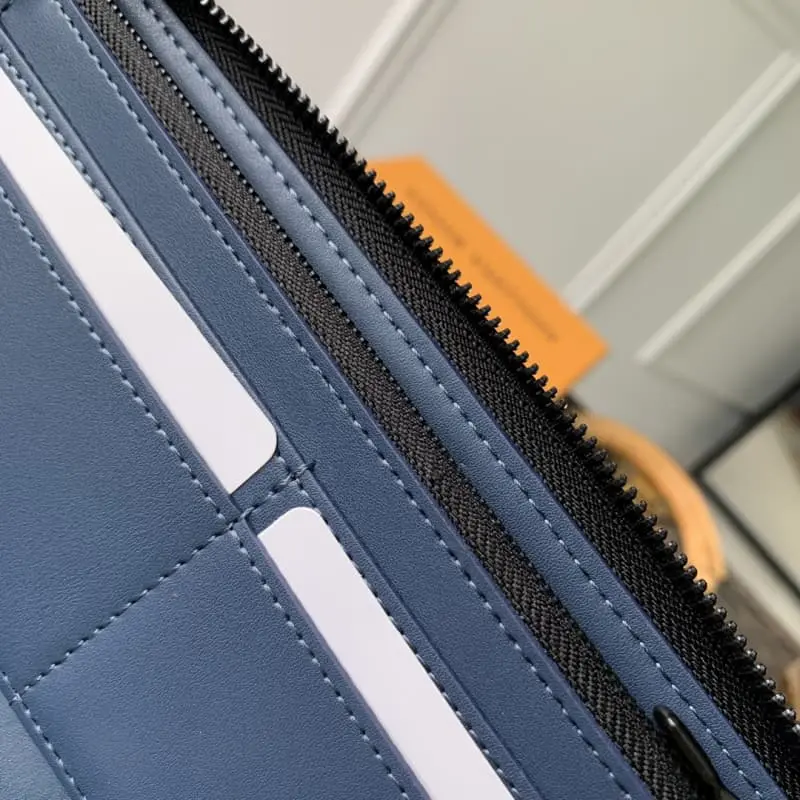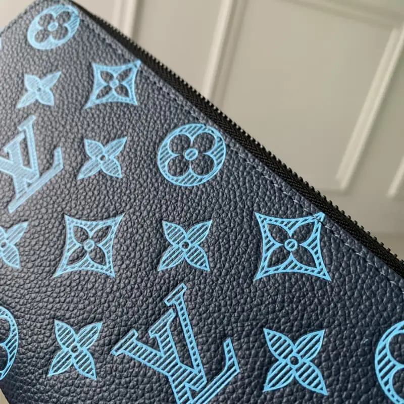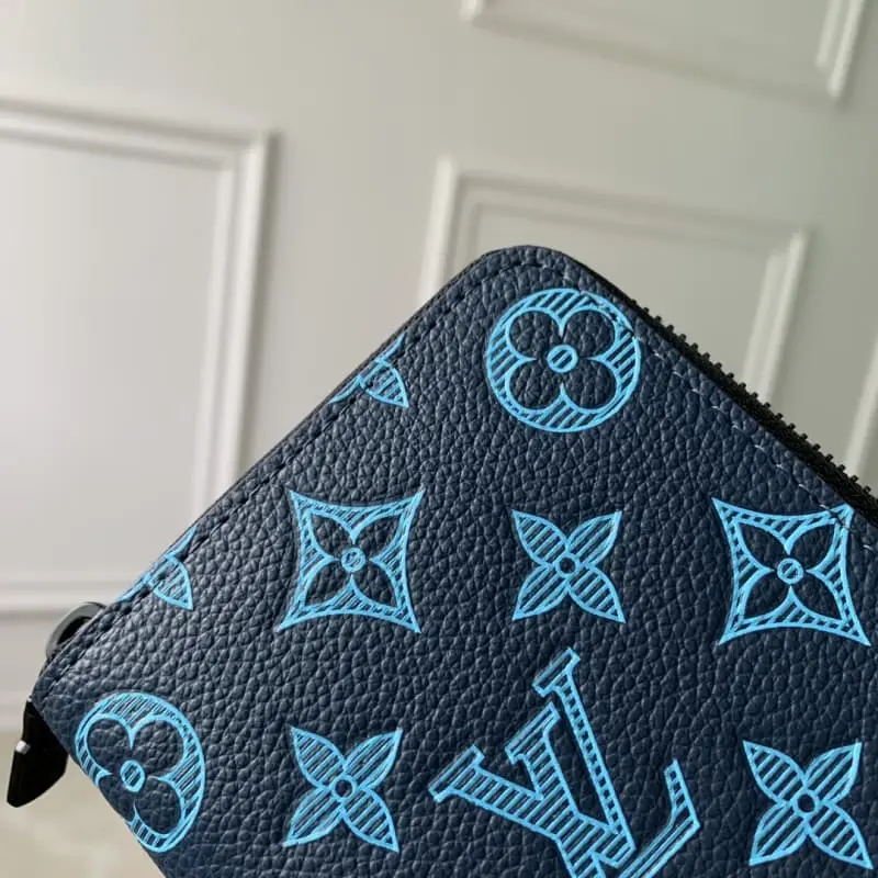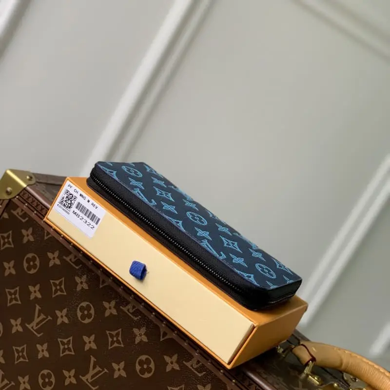 M82322 “Zippy Wallet Vertical” with Monogram pattern printed and embossed on soft calfskin. The design is inspired by the original painting of the Monogram pattern drawn by Georges Lbag in 1896. There are multiple card slots and pockets inside the circular zipper opening, as well as a zipper compartment for coins. Size 10??20??2
