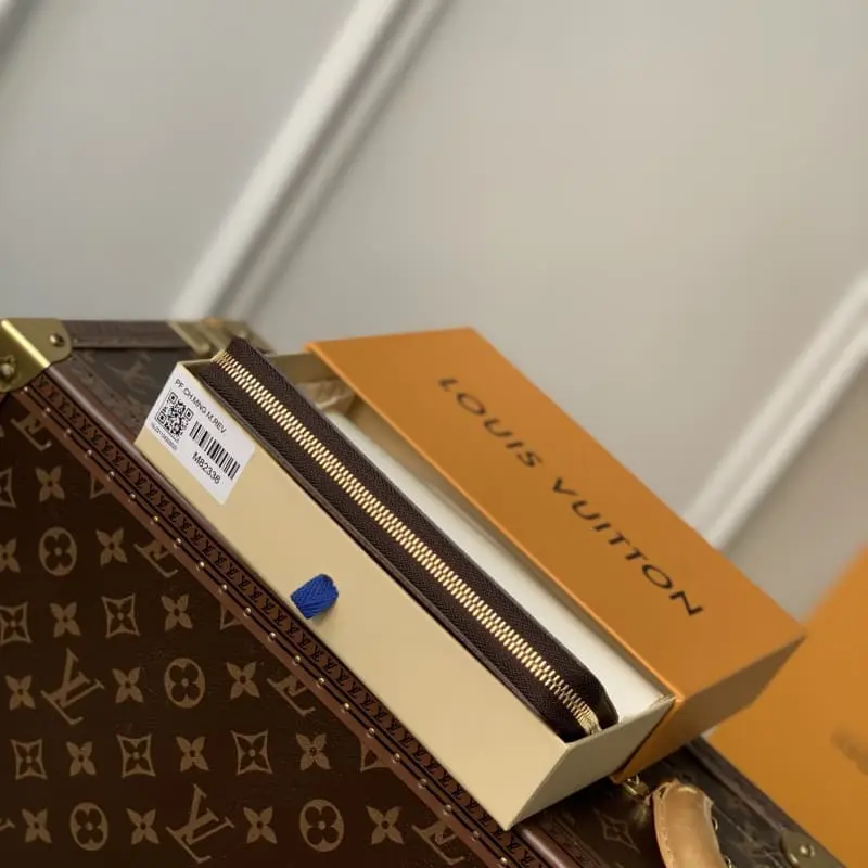 M82336 “Portefeuille Clemence” of elegant and graceful design made in Monogram Reverse canvas. Zipper-style opening and slim silhouette are its characteristic classic long wallet. Leather and canvas lined interior with practical pockets and compartments 8 card slots. Dimensions: 20 x 9 x 2 cm