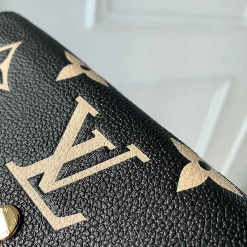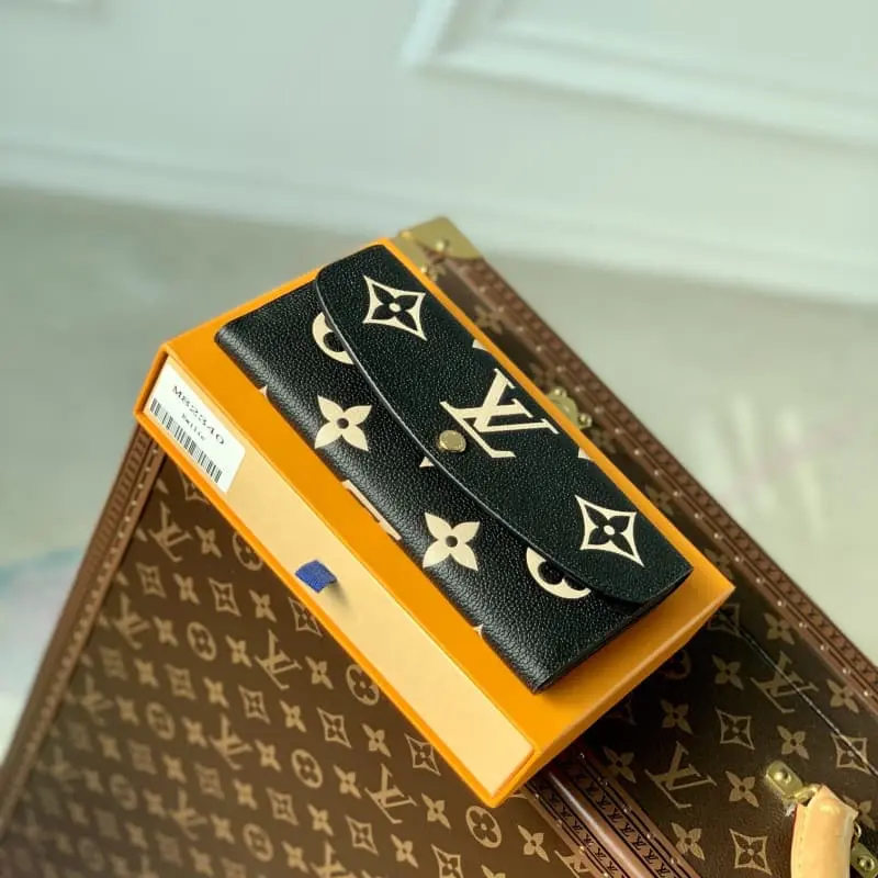 M82340 This Emilie wallet is made of Monogram Empreinte grained leather with a large Monogram pattern that is first embossed and then printed. The slim design features a zipped coin pocket and card compartment and can also be transformed into an elegant clutch. 19.0 x 10.0 x 2.0 cm (L x H x W)