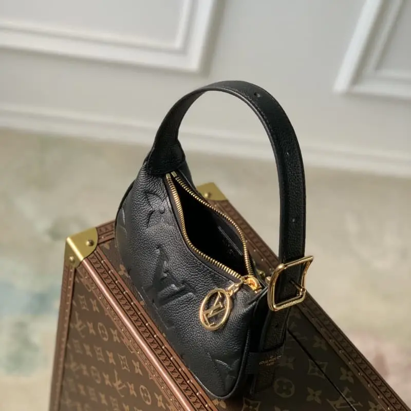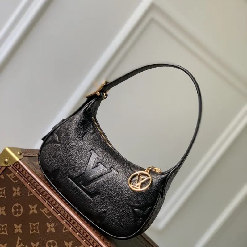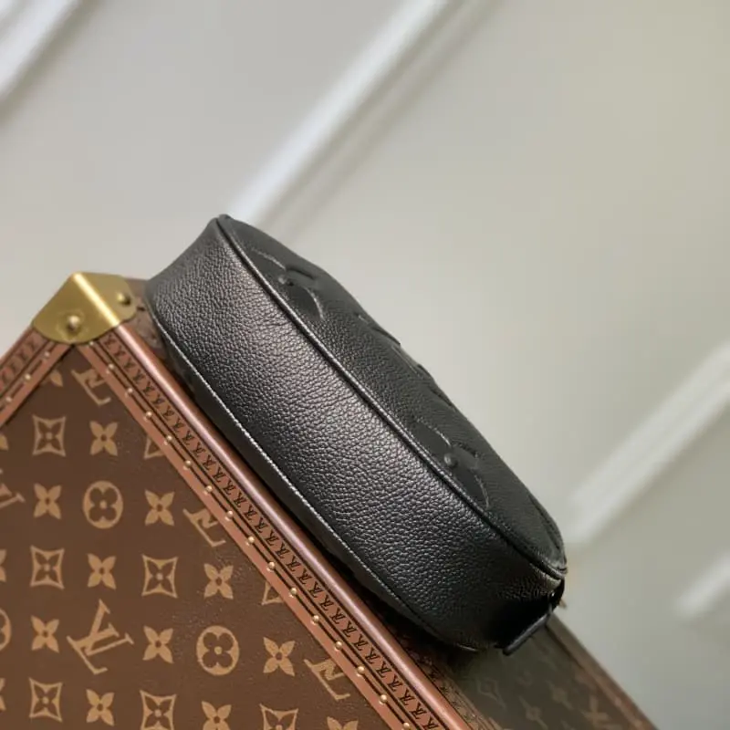 M82391 Black The Mini Moon in soft, monochromatic Ampland leather. A refined, compact micro shoulder bag. The engraved single-sided pattern harmonizes with jewel-like details such as the oversized LV circular signature hanging from the zipper. A must-have for everyday or evening wear. A piece that can be worn on the shoulder or arm or as a handbag thanks to the adjustable strap. 20.5 x 11 x 5 cm (length x height x width)