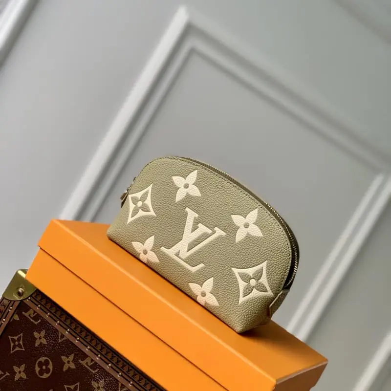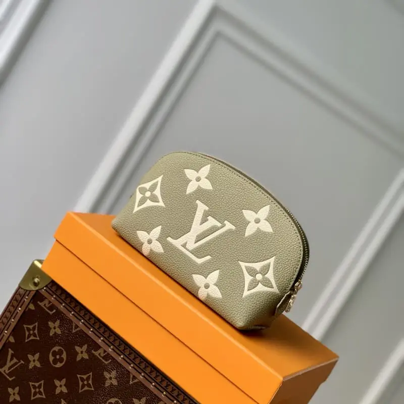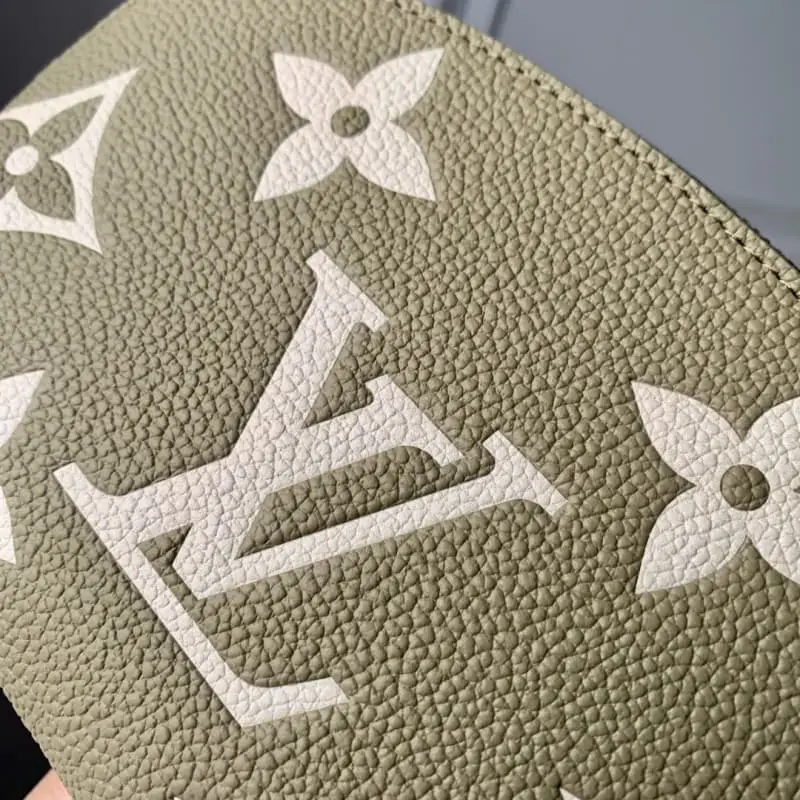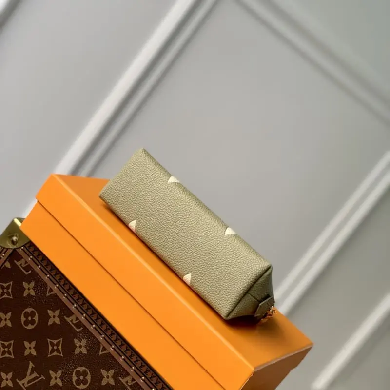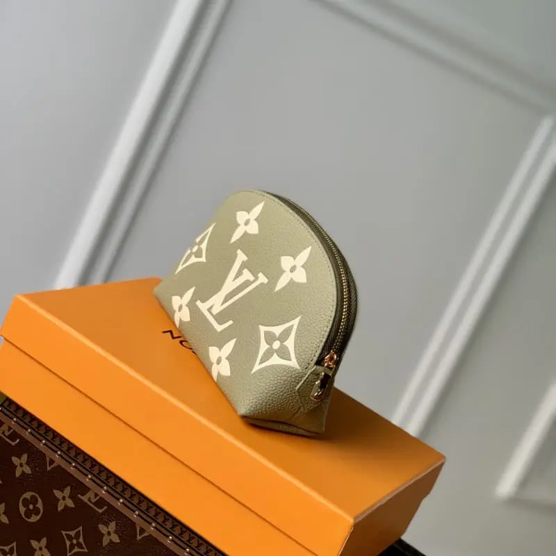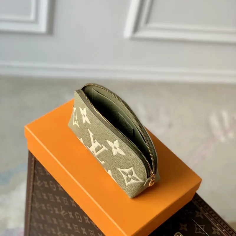 M82493 Green Cosmetic Bag Series This small cosmetic bag is made of Monogram canvas and can be easily put into a handbag. The round bag body and flat bottom design are convenient for taking and placing cosmetics. Size: 17??12??6 cm