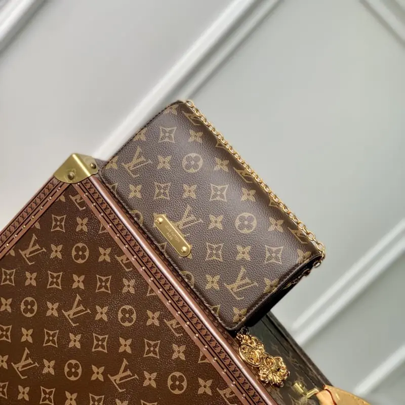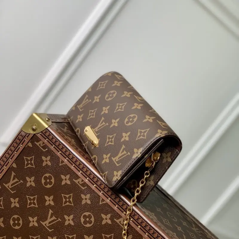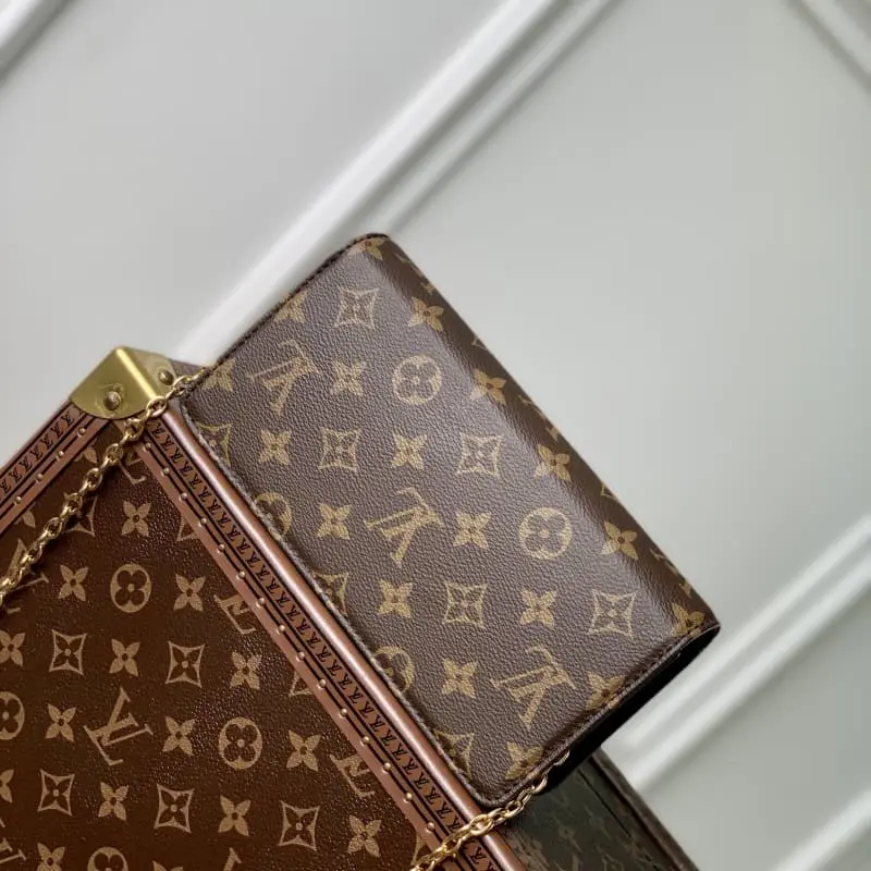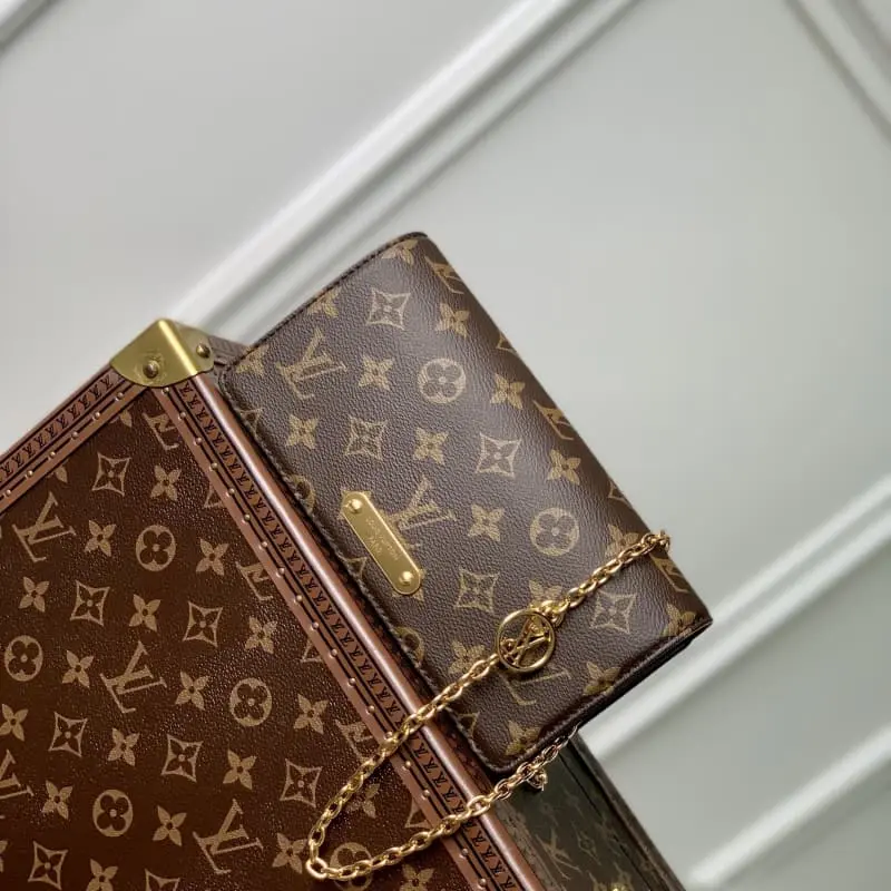 M82509 Monogram chain bag woc series LiLy Woc handbag Monogram canvas chain Lily wallet combines a stylish rectangle with a subtle retro look. The flap is decorated with a gold plaque and rivets for multiple carrying methods. Size: 20.5?? 10?? 3.5 cm