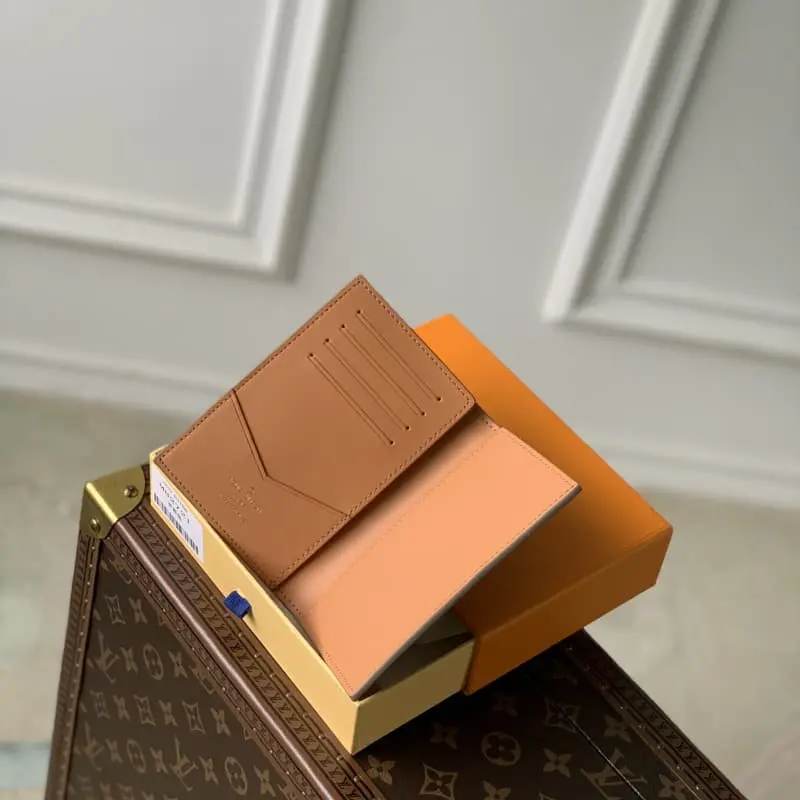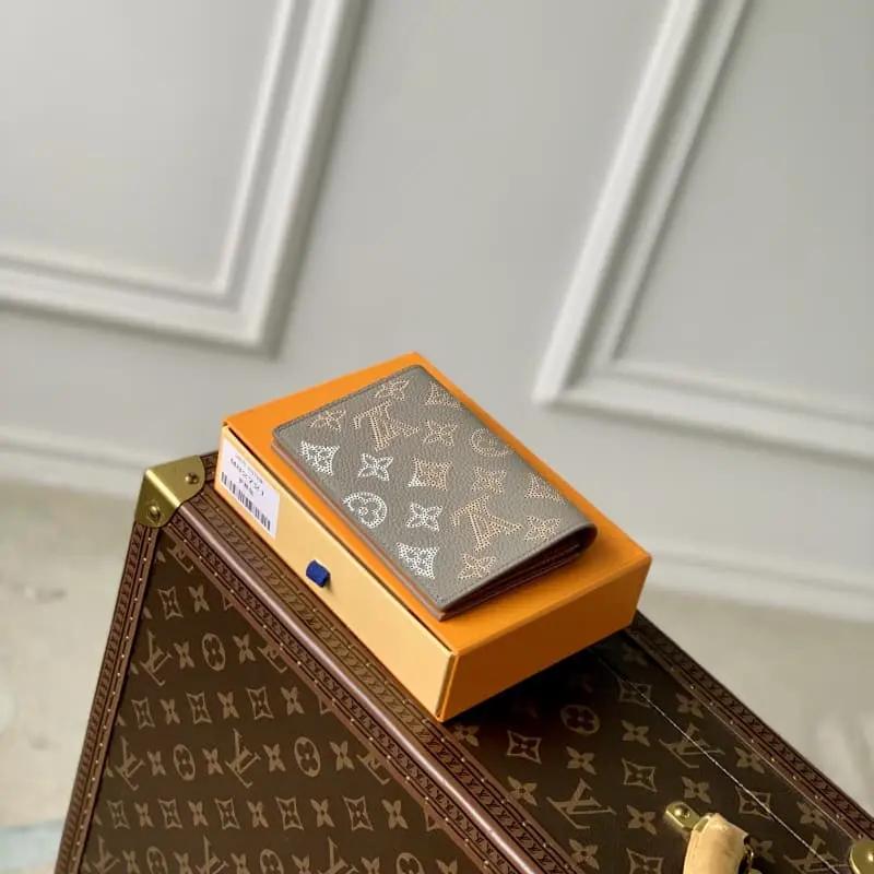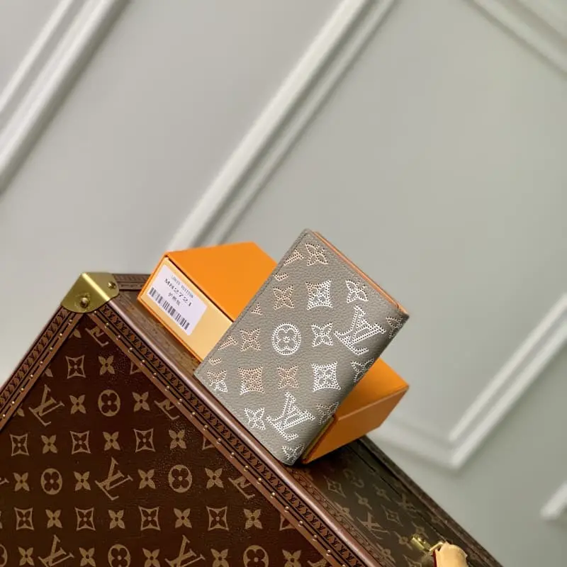 M82721 Passport holder in soft Mahina calfskin leather embellished with the Monogram openwork pattern. In addition to two open pockets for your passport, the passport holder also features four business card slots and a flat pocket for receipts. Dimensions: 10 x 14 x 2.5 cm