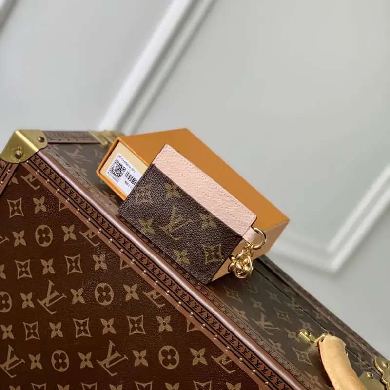 M82739 Monogram/Pink Made of Monogram coated canvas and cowhide leather, the large compartment has card compartments evenly spaced on both sides. The Monogram floral decoration exudes a lustrous glow, making it a great gift. Dimensions: 10.2 x 7.3 x 0.3 cm