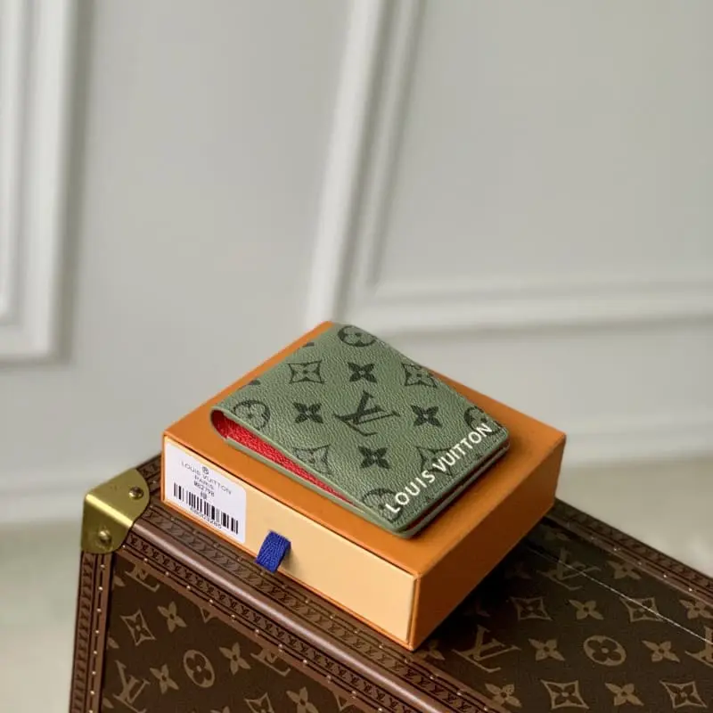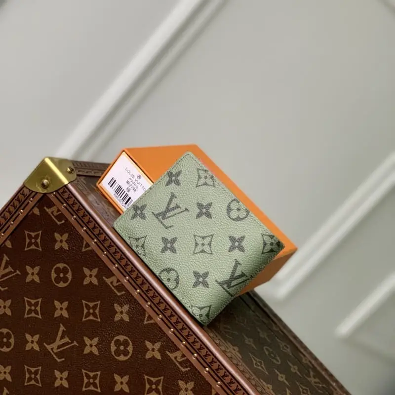 M82798 Green Slender wallet with Monogram canvas and iconic Monogram pattern lining. Vertical Lbag logo embellished on it. Card compartment and banknote compartment provide ample space. Dimensions: 11.0 x 8.5 x 2.0 cm