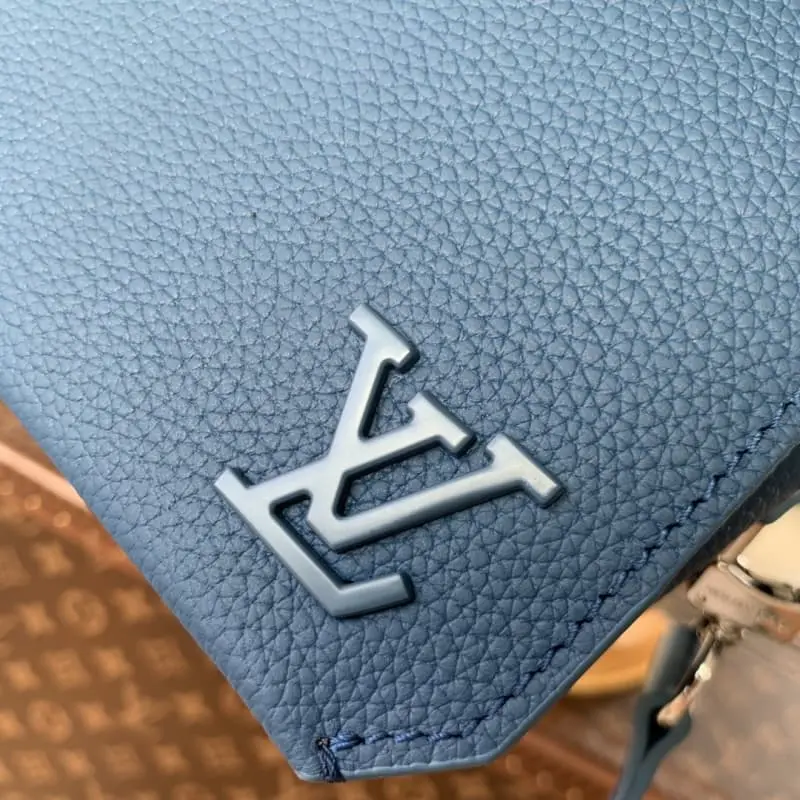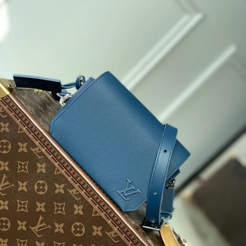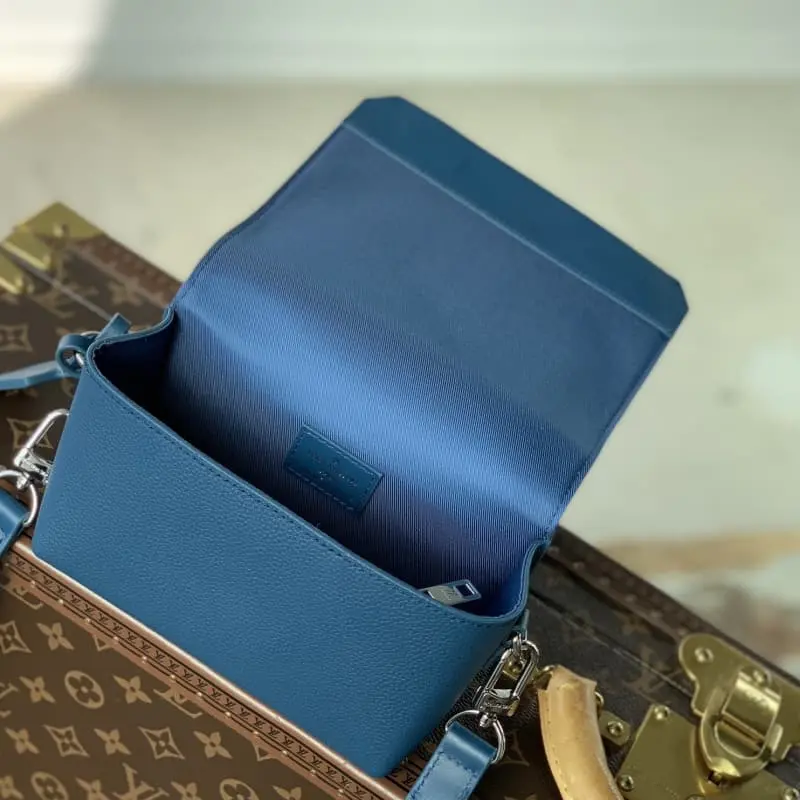 M82804 Blue Full Leather Men’s Messenger Bag Series Autumn and Winter New FASTLINE WEARABLE WALLET Handbag This Fastline Wearable Wallet handbag reveals the iconic style of the LV Aerogram series through the metal LV letters and the chamfered corner design of the flap. The magnetic flap opens with ample space and the zippered inner pocket ensures neat storage. The adjustable shoulder strap allows for comfortable carrying. 17.3 x 12 x 7 cm.