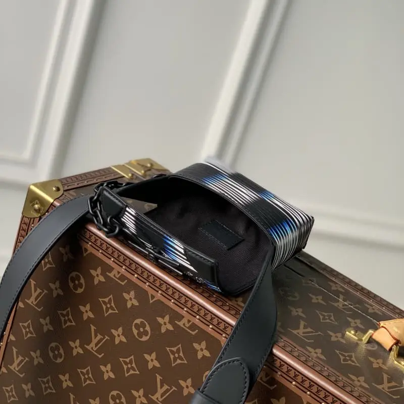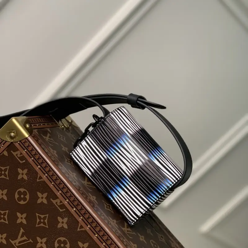 M82817 The Micro Steamer bag is available in the Spring/Summer 2024 collection. The compact crossbody design is inspired by the enchanting sky of a moonlit night. Epi XL leather features a new season large Damier pattern for a chic texture. Luggage-style corners and a Steamer-style chain add a touch of classic style. 13.0 x 8.0 x 4.5 cm (L x H x W)
