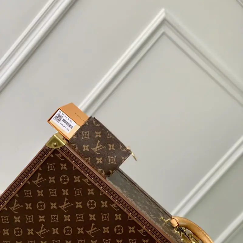 The “Porto Cult Romi” features a modern vibe and multiple functions. The simple design of the card holder is enhanced by the zipper-closing cosmetic bag with compartments. The cosmetic bag section is perfect for storing cash, coins and receipts. The fresh model crafted with Monogram & Monogram Reverse canvas is embellished with colorful leather lining and a gold metal-shaped LV ring zipper pull. Made. Dimensions: 12 x 8 x 0.8 cm