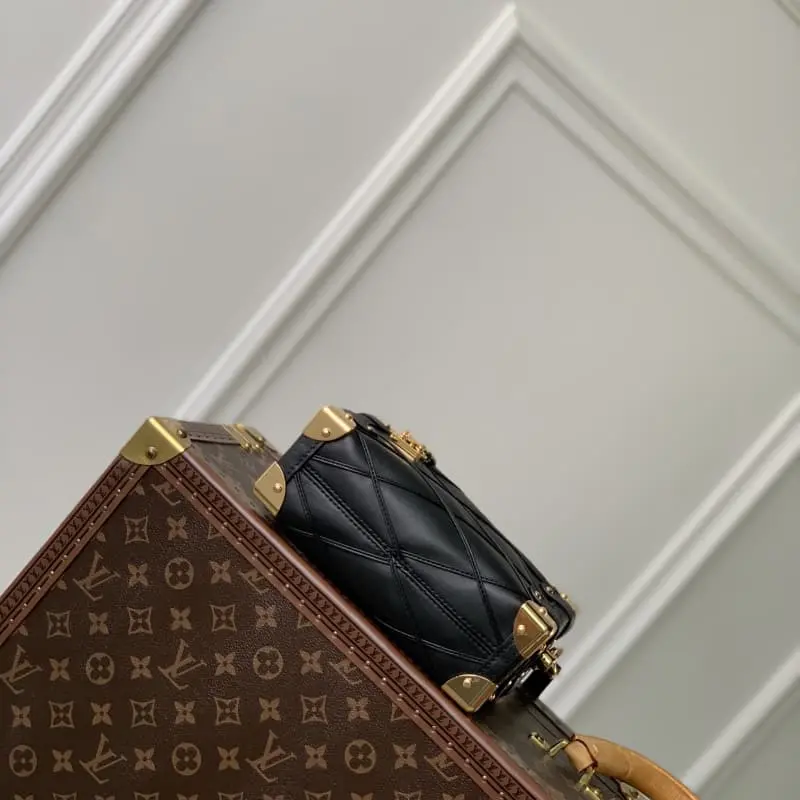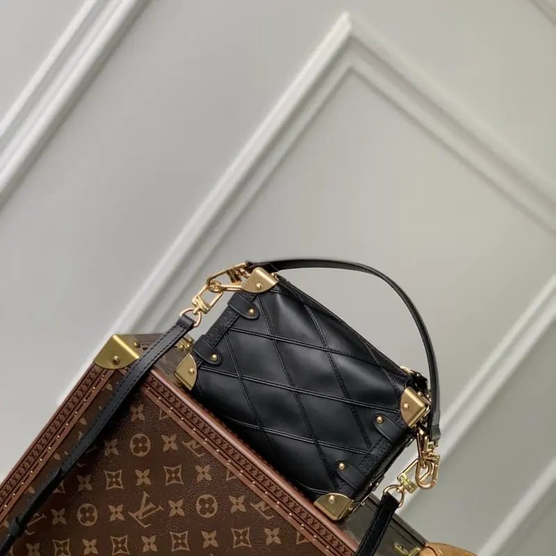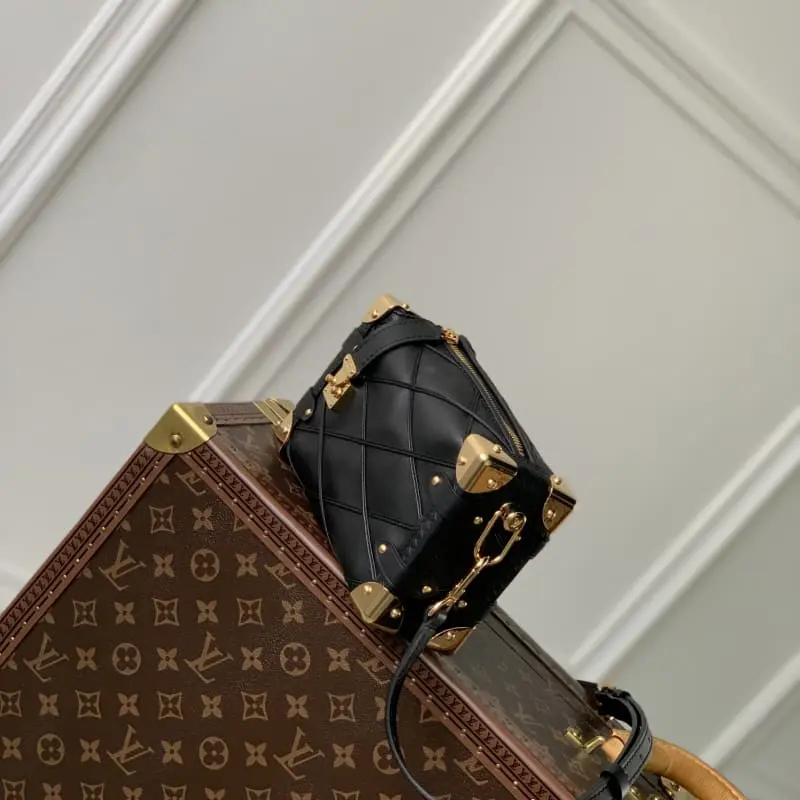 M83030 This Side Trunk small handbag is based on the brand’s classic hard case. It uses quilted cowhide leather to create a box-shaped outline, embellished with reinforced corners, rivets and other exquisite metal parts, and creatively connects the zipper closure with an S-lock buckle. It is equipped with a detachable top handle and a detachable and adjustable shoulder strap. 18.0 x 12.5 x 8.0 cm (length x height x width)