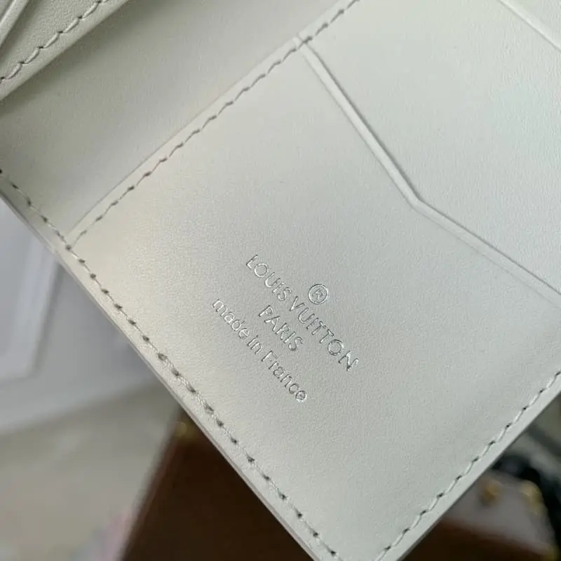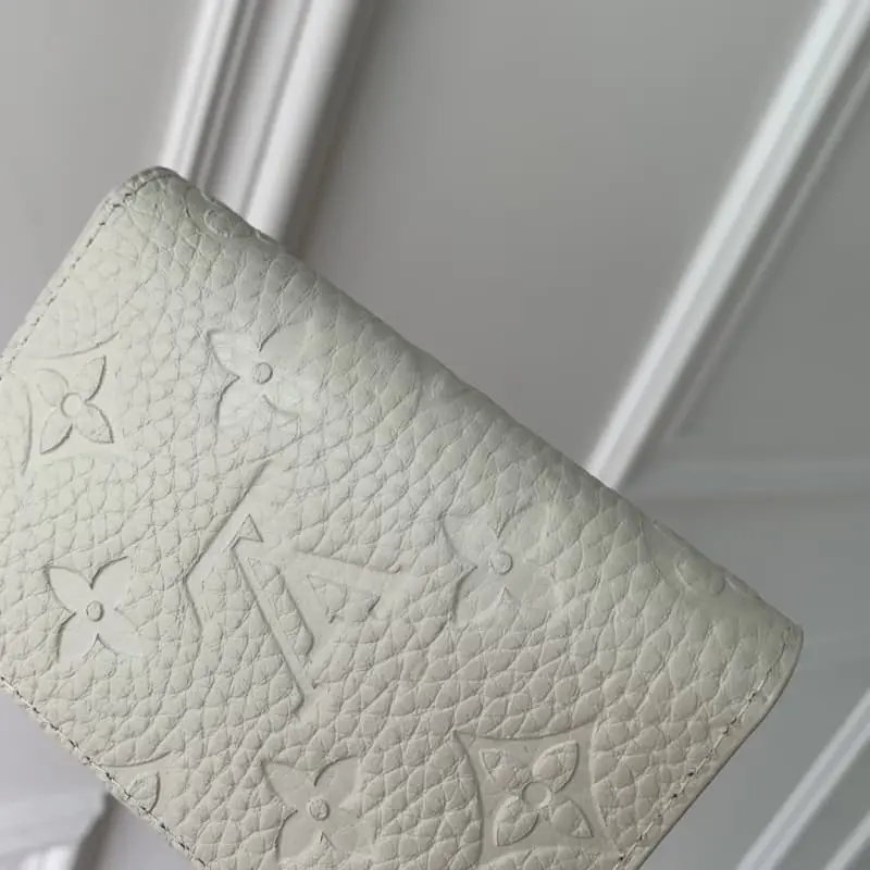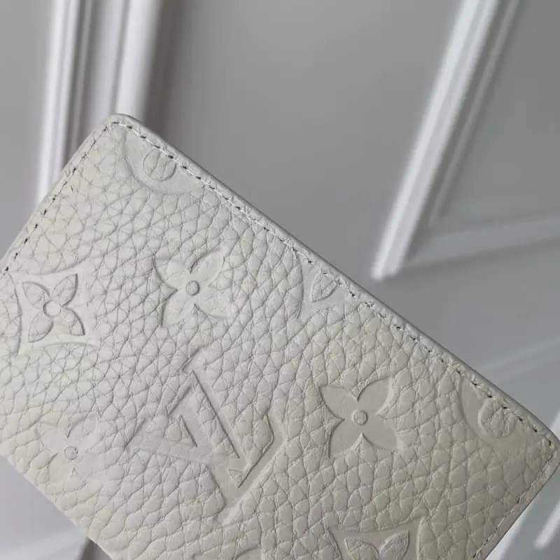 M83069 Embossed off-white! The chip version of the pocket wallet is made of full-grain Taurillon leather with subtle embossing of the LV letters and Monogram flowers. The exquisite structure has an inner pocket and an outer pocket for easy access to credit cards or transportation cards. Detailed features 7.5 x 11.1 x 1 cm (length x height x width)