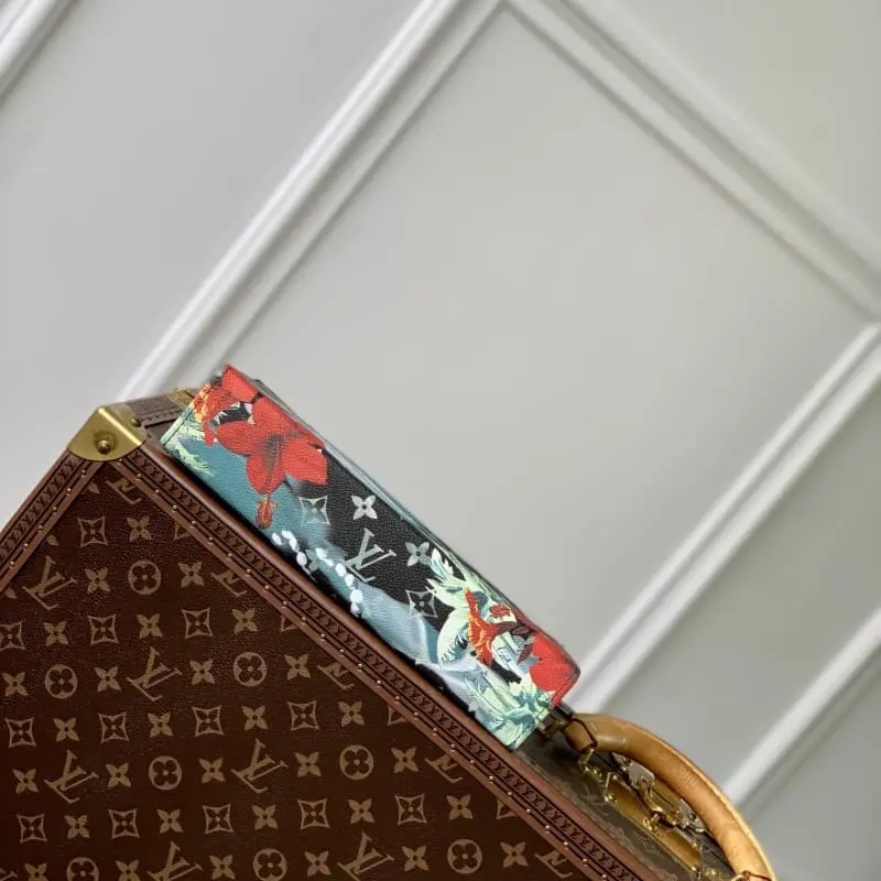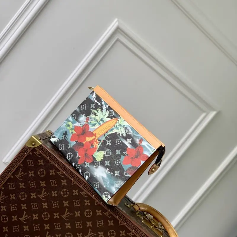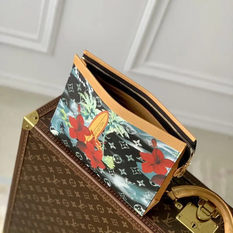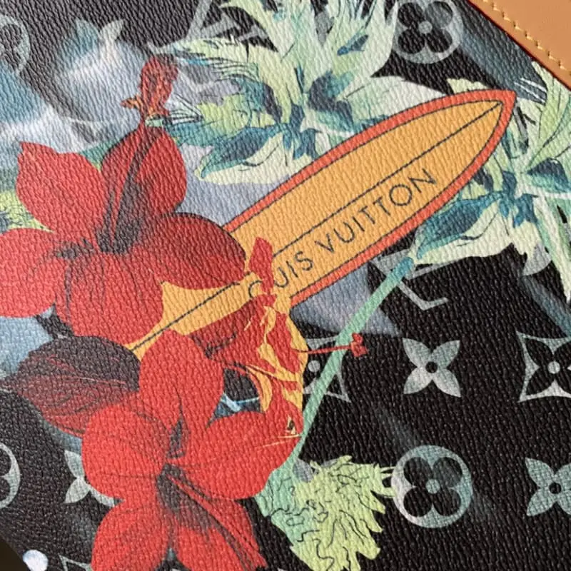 M83465 Green Virgil Abloh renews the Pochette Voyage handbag design with a skateboard coconut tree theme, and makes the ethereal LV logo appear on the Monogram canvas background. Pockets and card slots for orderly storage. Size: 27.0 x 21.0 x 3.0 cm