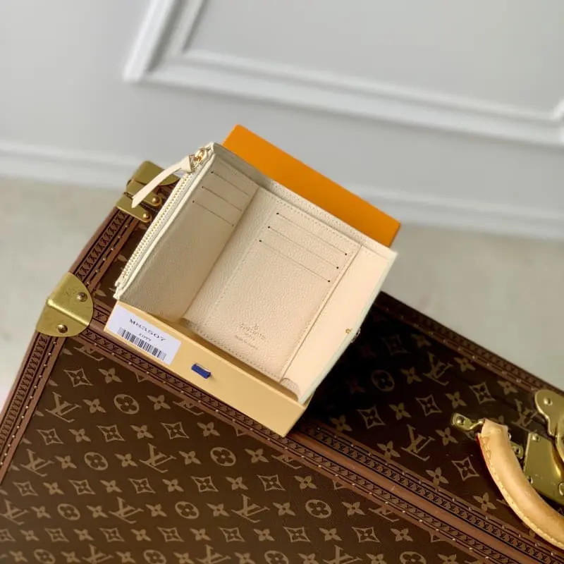 M83505 “Zippy Wallet” with embossed and printed Monogram pattern on puffy lamb leather. Cut in a feminine tone and finished with a gold zipper. Multiple compartments with compartments, pockets, and card slots for storing necessities such as bills and coins make this a functional wallet for daily use. Dimensions: 19.5 x 10.5 x 2.5 cm