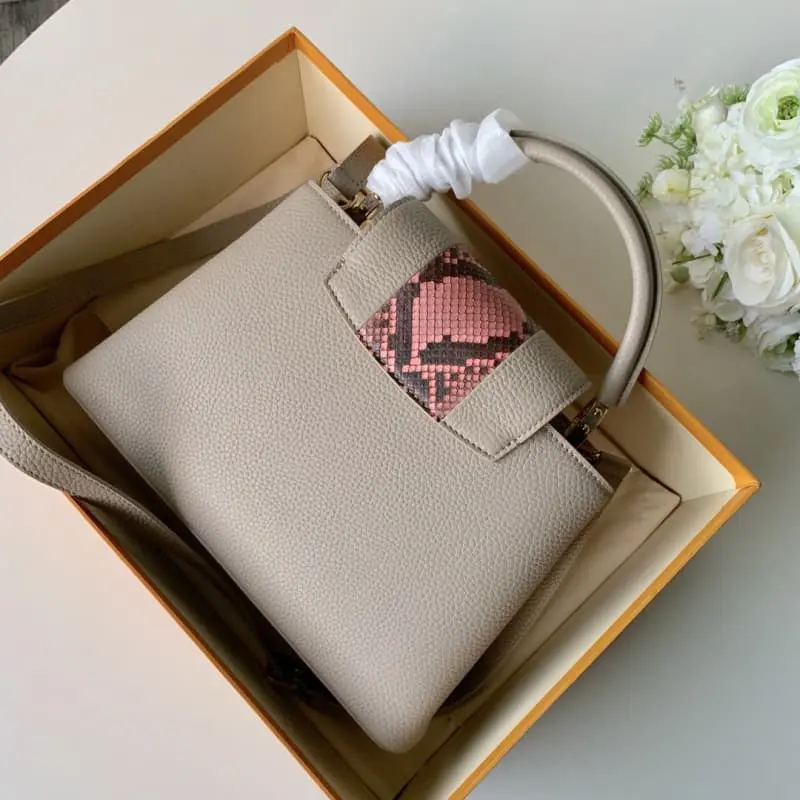 New! Top original M90198 This Capucines Medium Handbag is a perfect match for all styles from classic to avant-garde with its stylish mini size and trendy bright colors. The Capucines Medium Handbag features a shiny colorful finish and a removable long strap for casual shoulder or crossbody wear. size 31x21x11cm