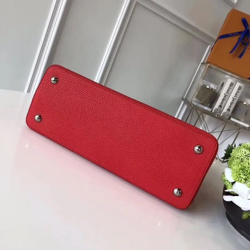 M94631 Capucines Medium Handbag is now available. The Capucines Medium Handbag is a stylish mini size and trendy bright colors that perfectly match various styles from classic to avant-garde. This handbag features shiny palladium decoration and is suitable for casual shoulder carry. Size: 36 x 23 x 14 cm.