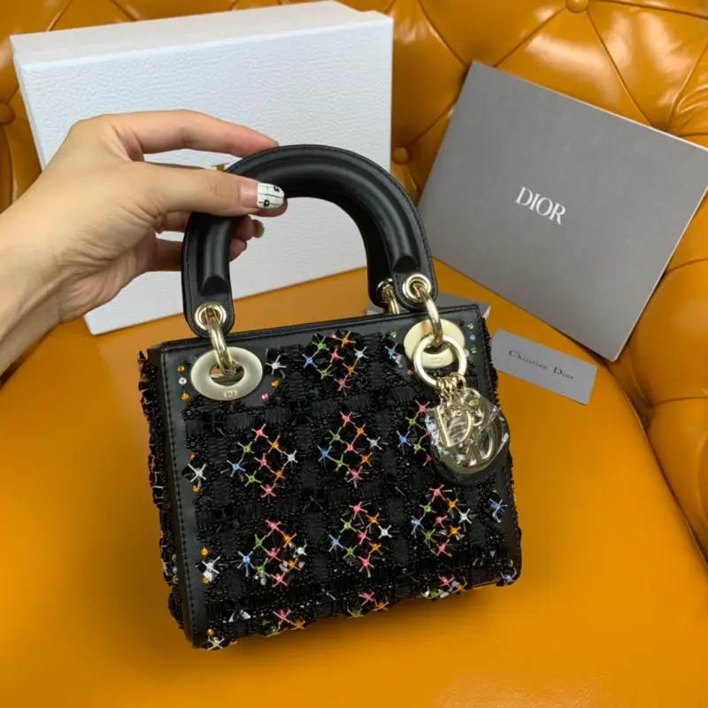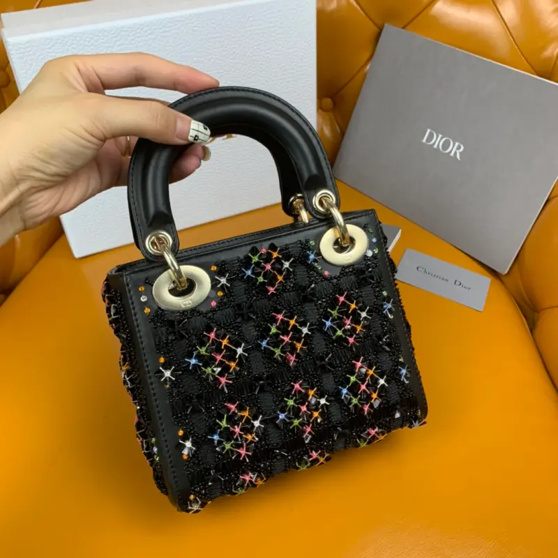 Princess Diana three-grid embroidery black beads size: 17cm