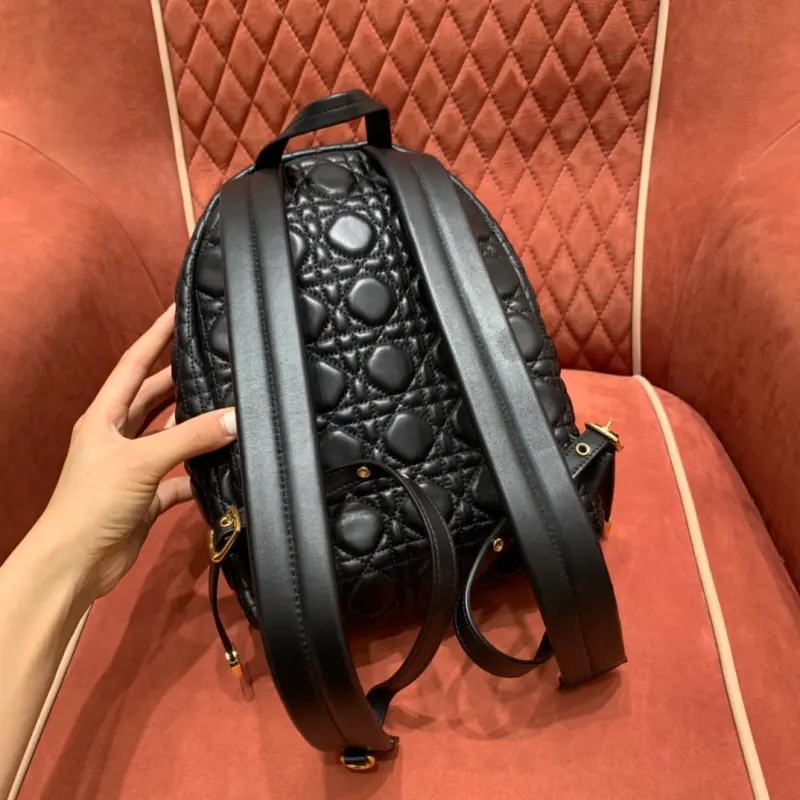 Oblique full leather backpack, retro backpack, leather with classic grid lines, retro, classic and beautiful, full leather shoulder strap, retro hardware, very practical capacity, size: 21.5*31.5*13cm