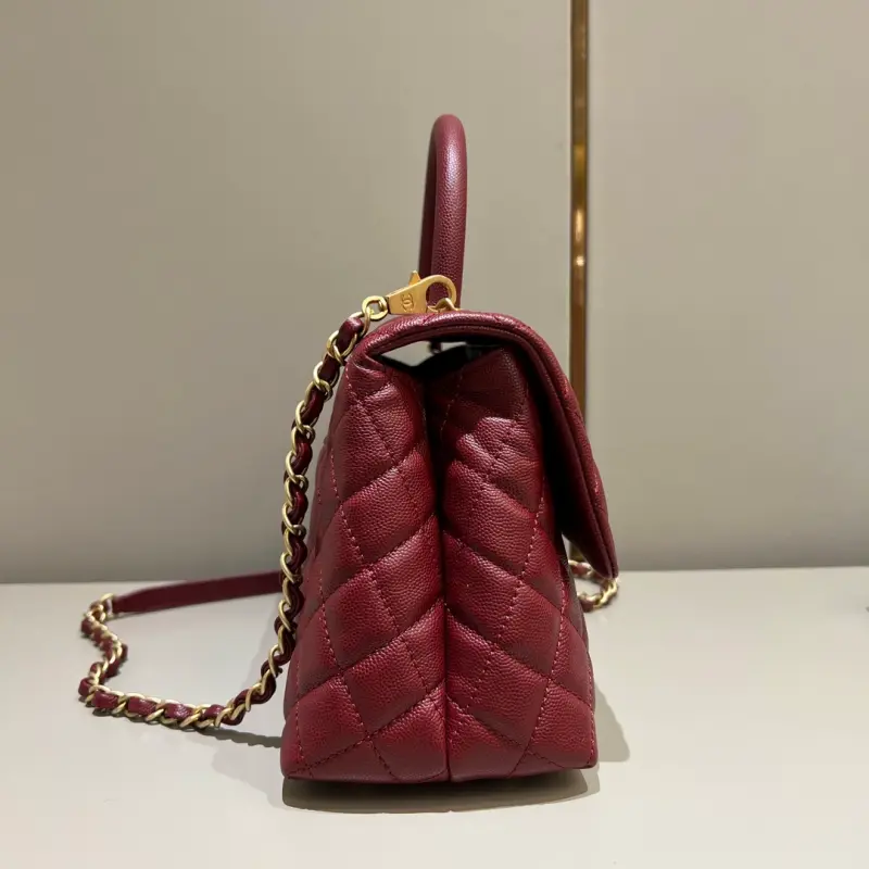 Coco handle-medium 29cm-cowhide handle-fine ball caviar cowhide-burgundy retro gold buckle