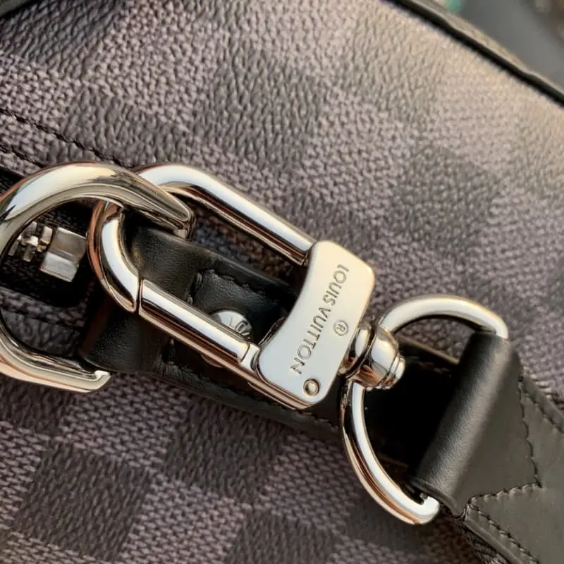 N40452 This City Keepall bag combines Damier Infini embossed leather and Damier Graphite canvas to highlight the clean lines of the checkerboard pattern. The Damier motif embellishes the wide jacquard shoulder strap and the Lbag Paris logo is detailed. Detailed Features 27 x 17 x 13 cm (length x height x width)