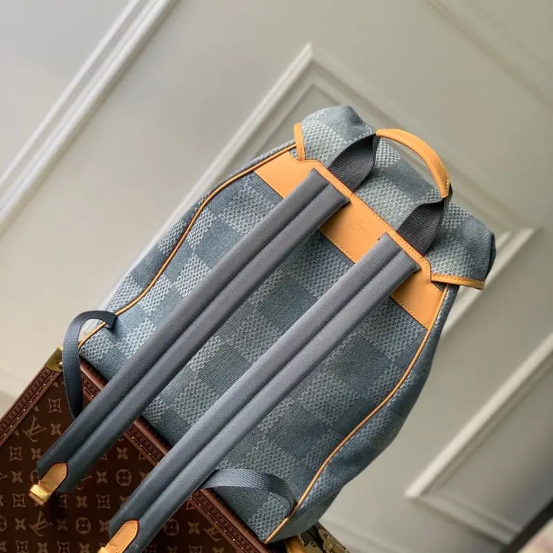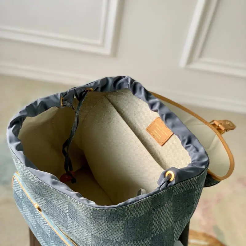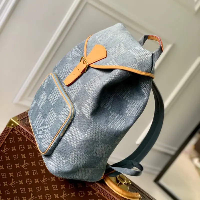 N40708 This Montsouris backpack is Pharrell Williams’ Damier Denim 3D cotton canvas with leather trims to give the Damier check a denim vibe. Drawstring and magnetic closure for a snug fit Montsouris buckle adds a finishing touch to the brand’s classic design. 32 x 40 x 19 cm (length x height x width)