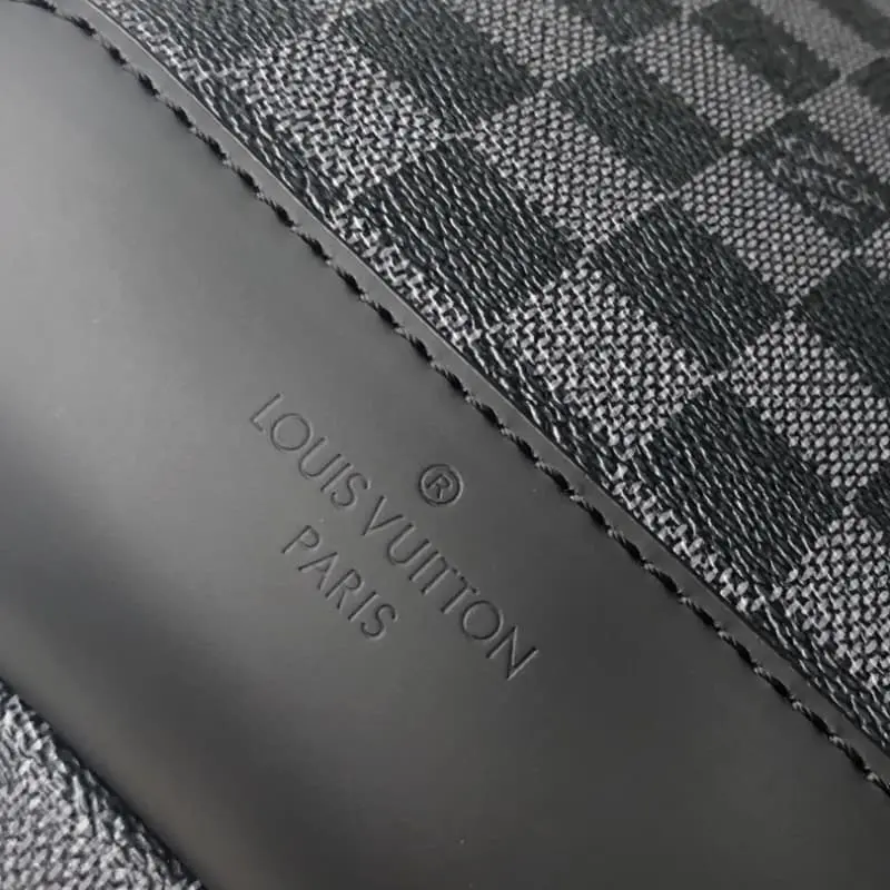 N41719 The Avenue shoulder bag in Damier Graphite canvas is the perfect companion for urban life: compact and stylish, it exudes a casual and uninhibited attitude. The “smart” shoulder strap can be carried on the left or right shoulder. The shape design improves the carrying comfort; the double zip closure ensures that valuables are secure. 20 x 31 x 10 cm (L x H x W) – Damier Graphique coated canvas- Cowhide trim- Fabric lining- Silver metal accessories- Adjustable braided shoulder strap- 1 pair of bag hooks for easy left or right shoulder carry- Double zip closure- Zipped outer pocket
