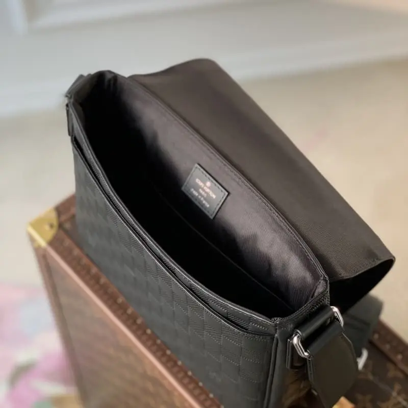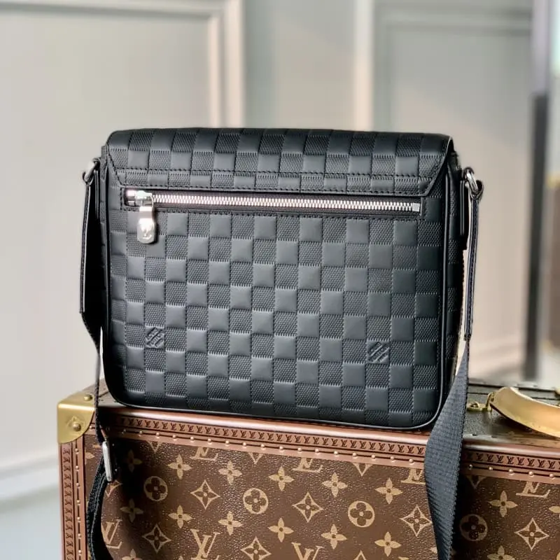 This N42711District small messenger bag is made of dark-dyed Taga leather with a zippered back pocket. Its square shape and perfect size make it an everyday choice. The adjustable shoulder strap is convenient for shoulder and crossbody wear. The D-shaped ring can hang keys or wallets. Dimensions: 26 x 20 x 7 cm (length x height x width)