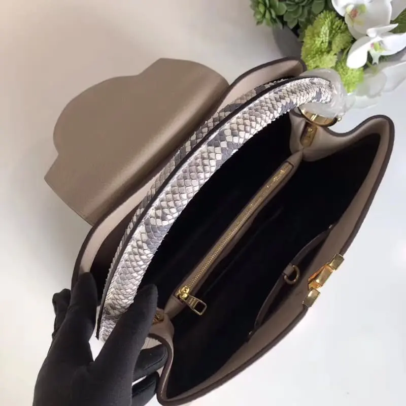 N91711Lbag Capucines medium handbag imported genuine snakeskin is now available. The Capucines medium handbag is a perfect match for all styles from classic to avant-garde with its stylish mini size and trendy bright colors. This handbag is decorated with shiny palladium and is suitable for casual shoulder carry. Size: 36 x 23 x 14 cm Imported lychee grain cowhide with pure sheepskin lining Original hardware The best quality in the market!