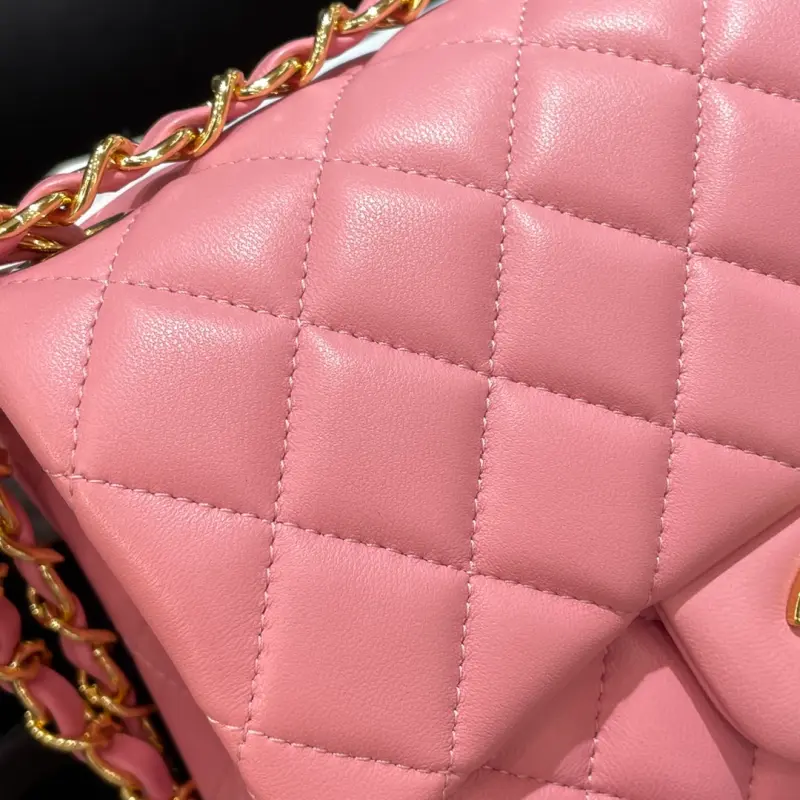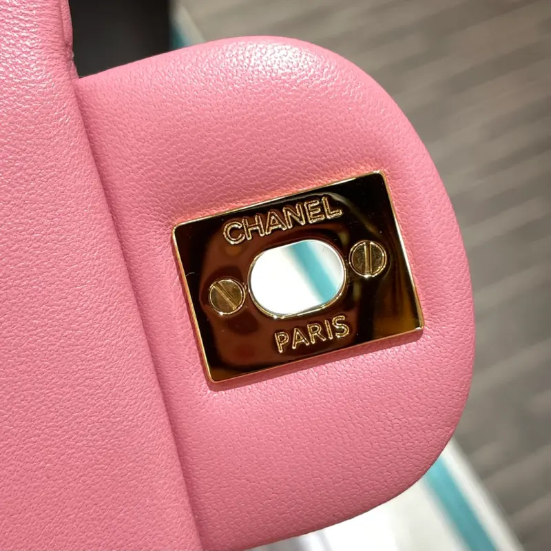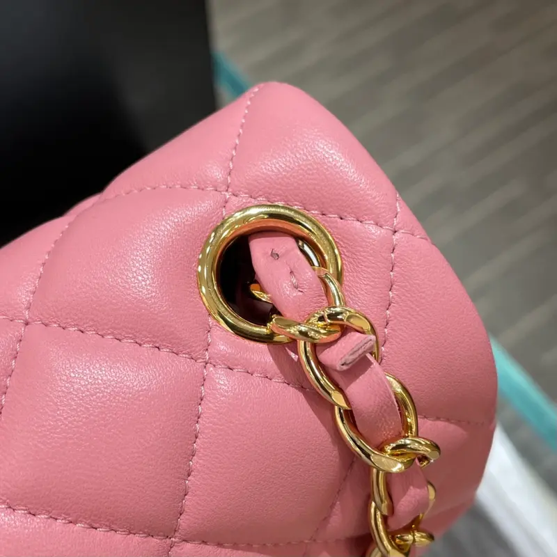 CF-Fat Square 17cm-Original Lambskin-Dark Pink Gold Button